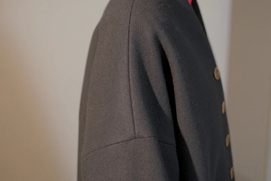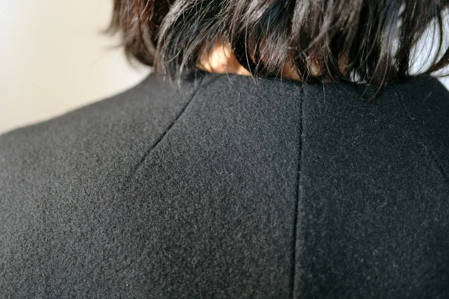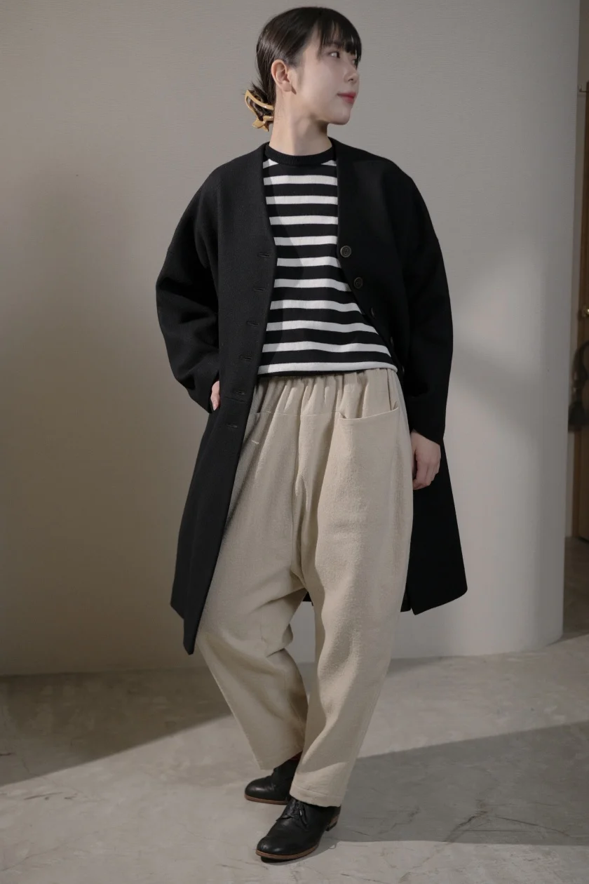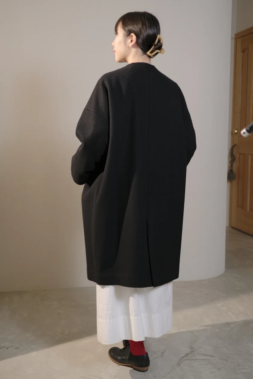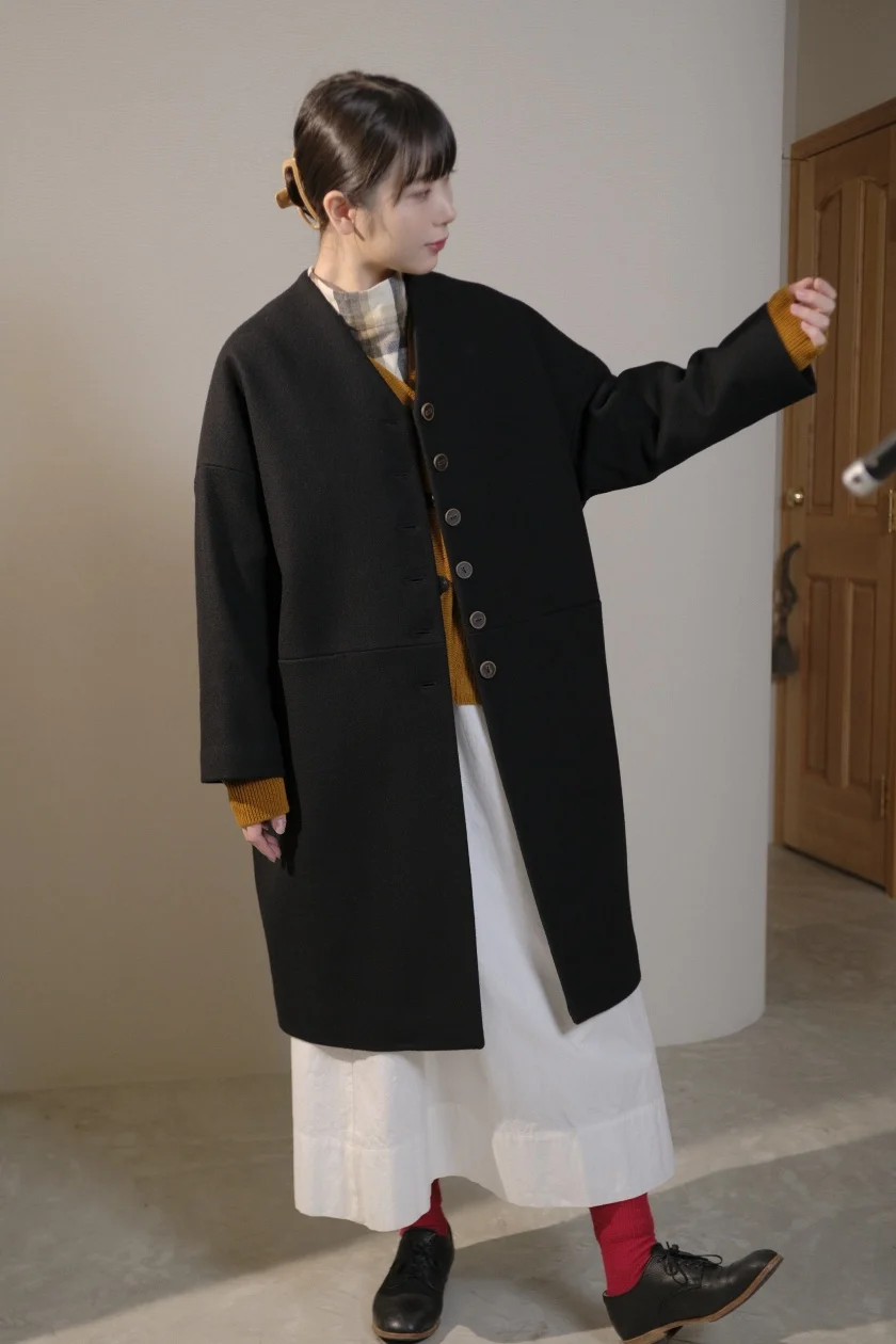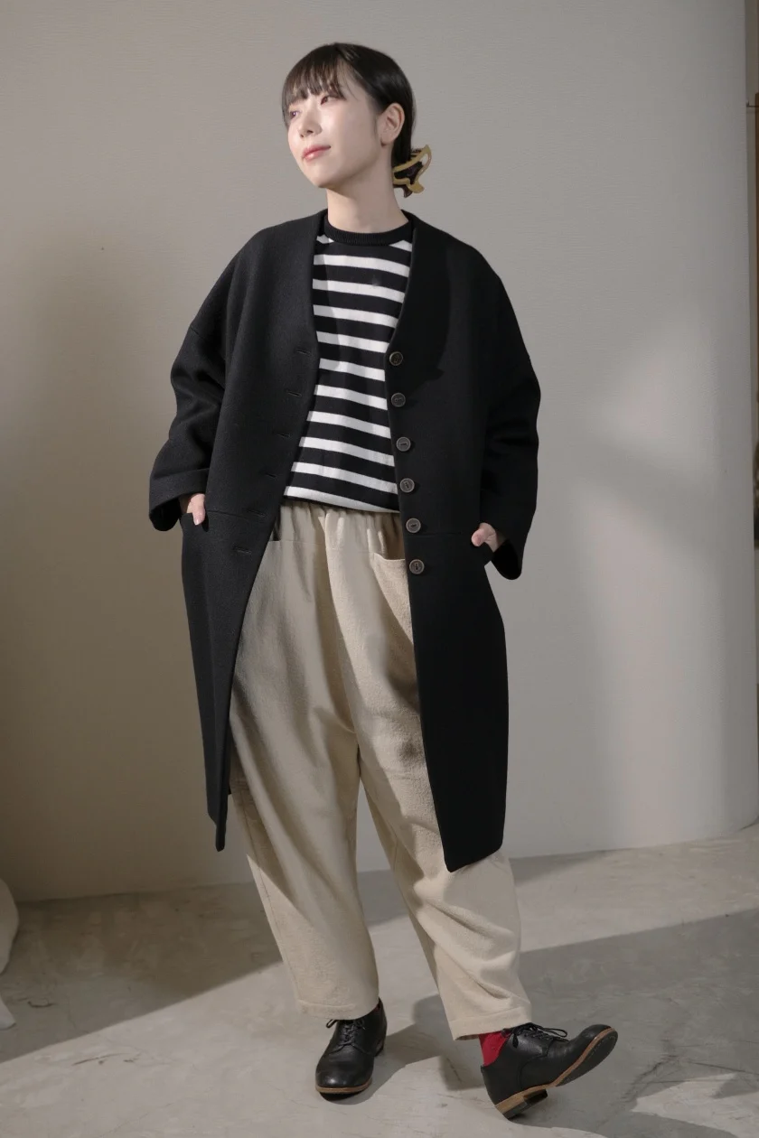 atelier naruse 定番の防寒性にも優れた厚手ウールのV明きコクーン型コート。一生ものの上質なメルトンウールコートです。