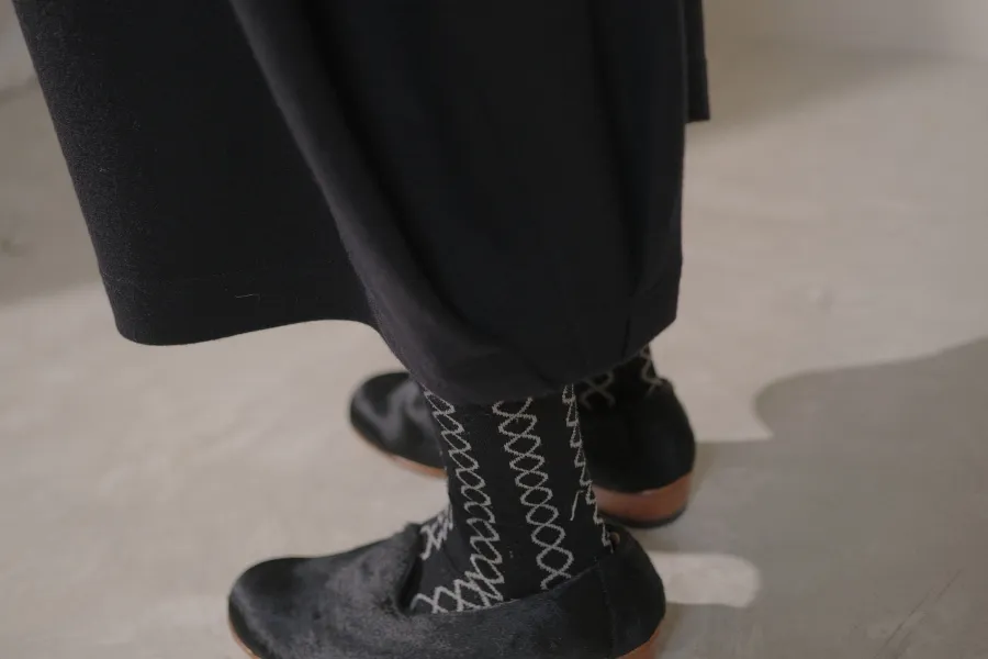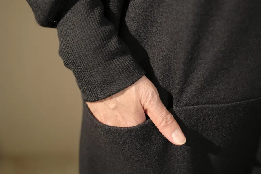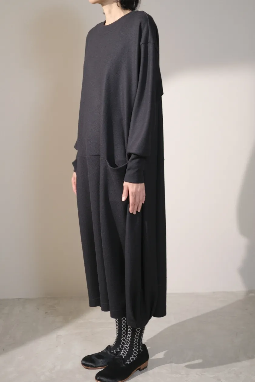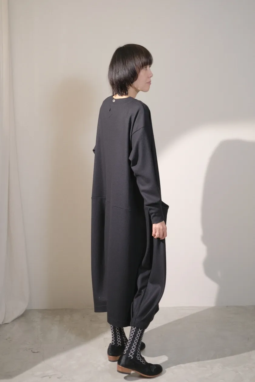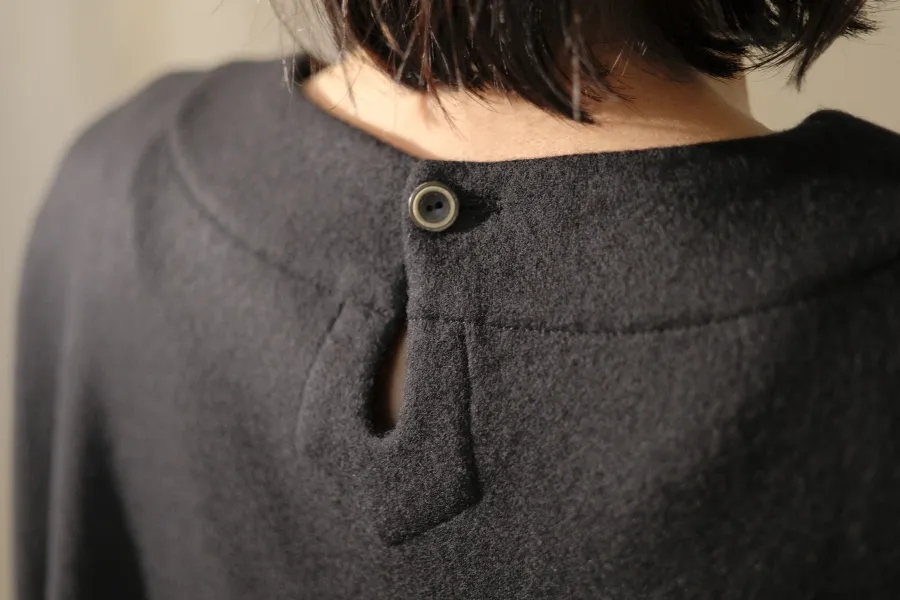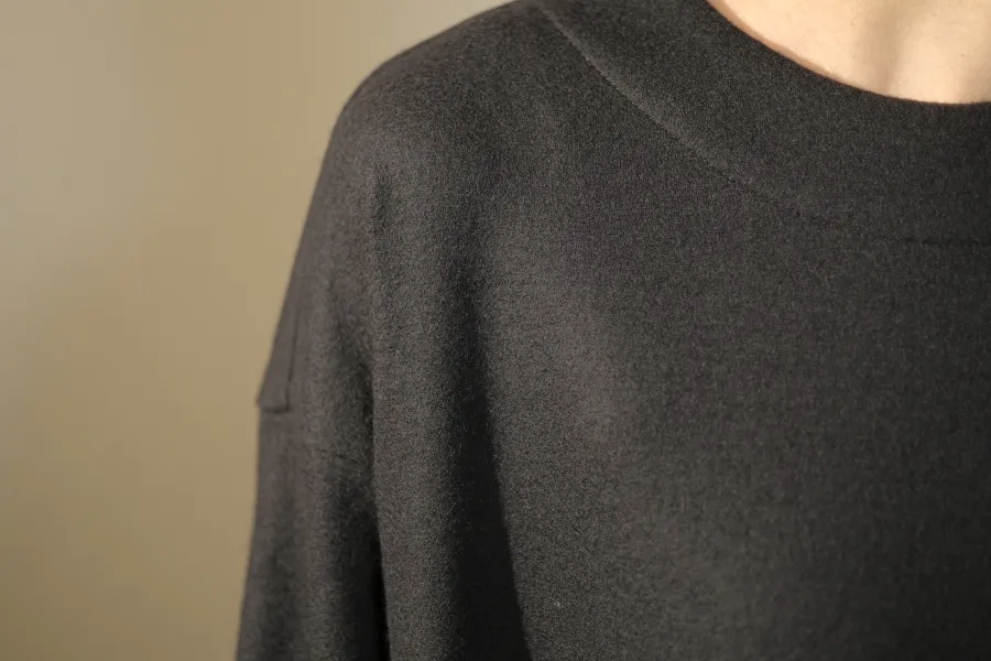 秋冬シーズンに度々登場してきた、コクーンワンピース。2025 a/wコレクションは、伸縮性と上質感があるやわらかで光沢のあるウールポンチでつくりました。