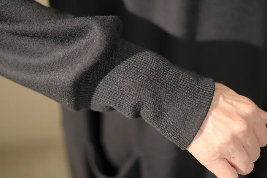 ・袖口リブはすこし長め、手首にやさしくフィットするサイズ感です。