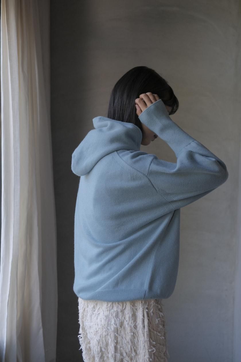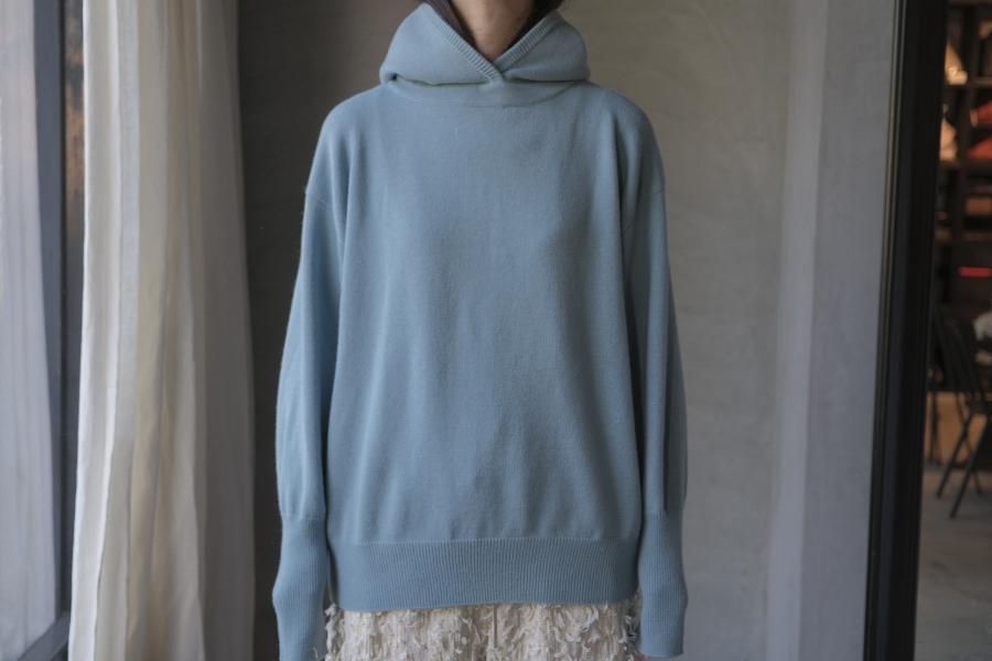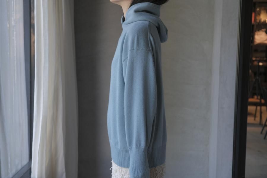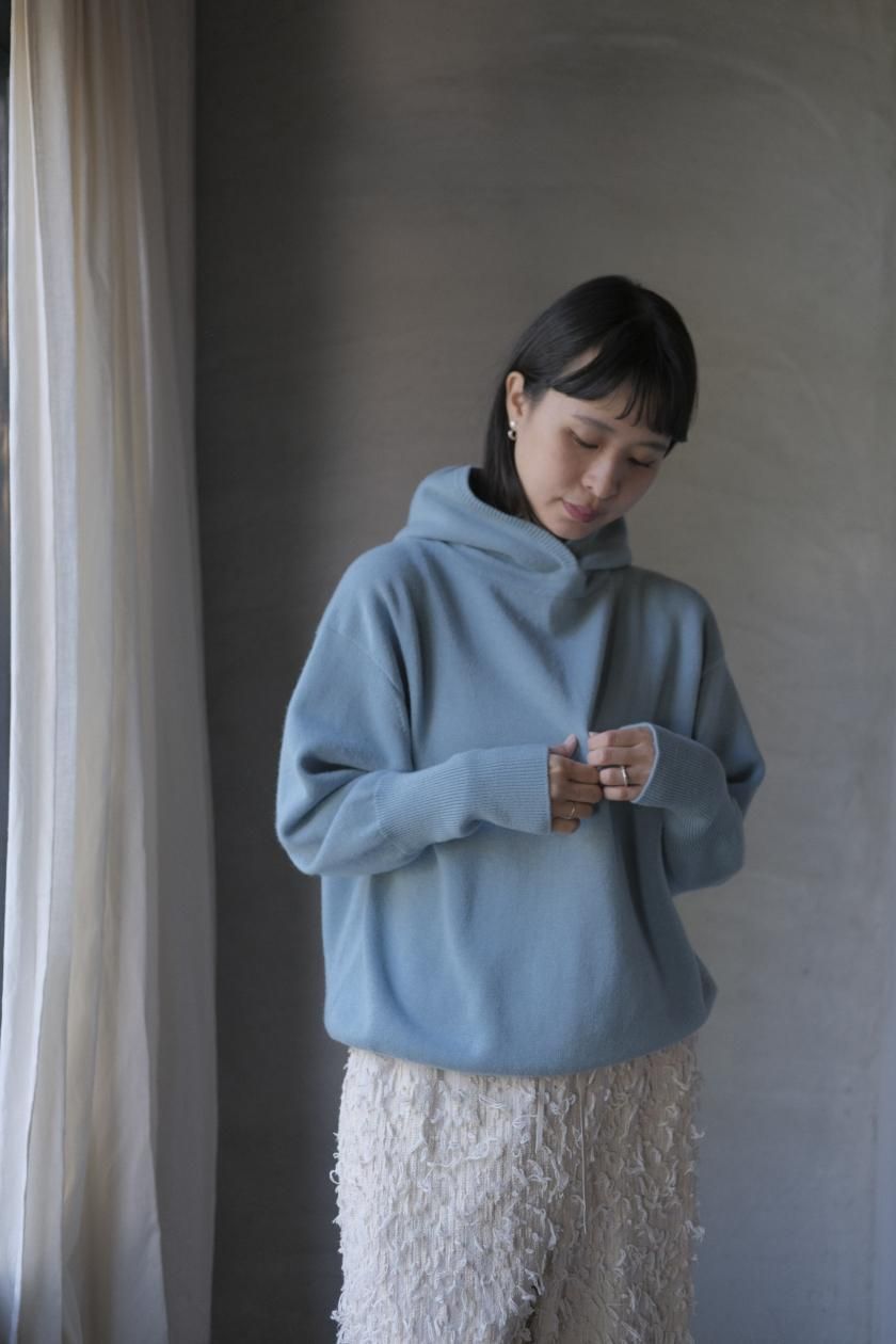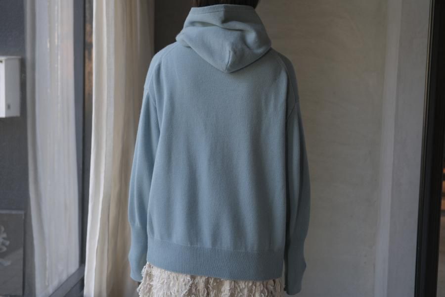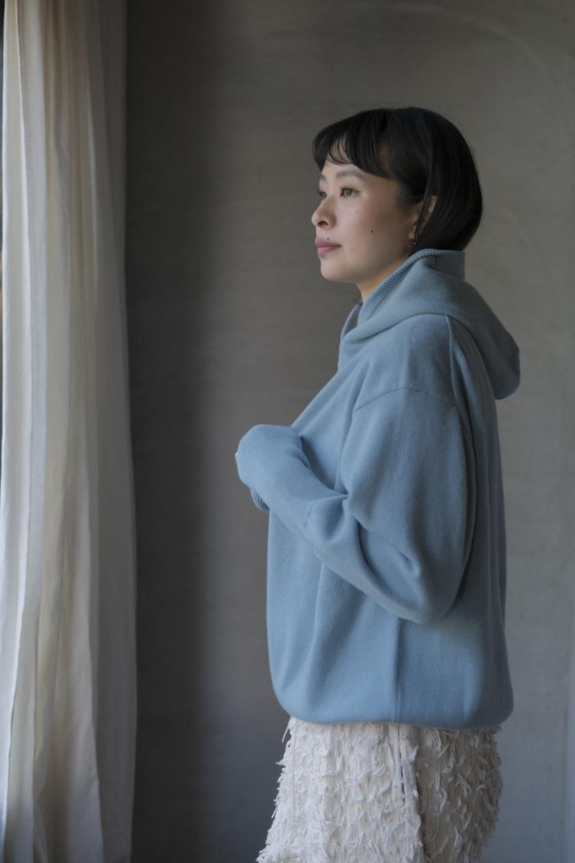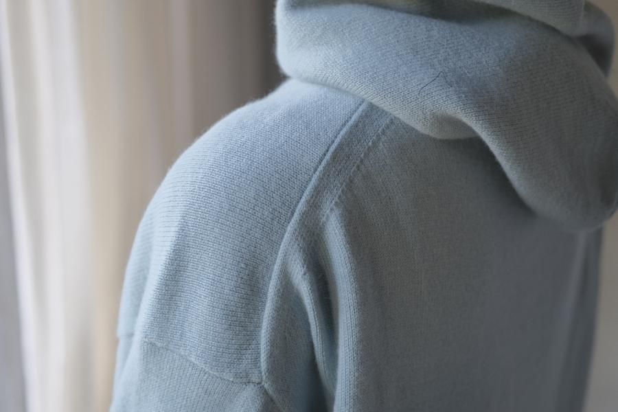 一見シンプルなデザインながら、袖のリブの長さやフードの立ち方、全体のシルエットなど、着用時に「ほかのパーカーとはちがうな」というディテールが立ち上がってくることにこだわったニットパーカーです。