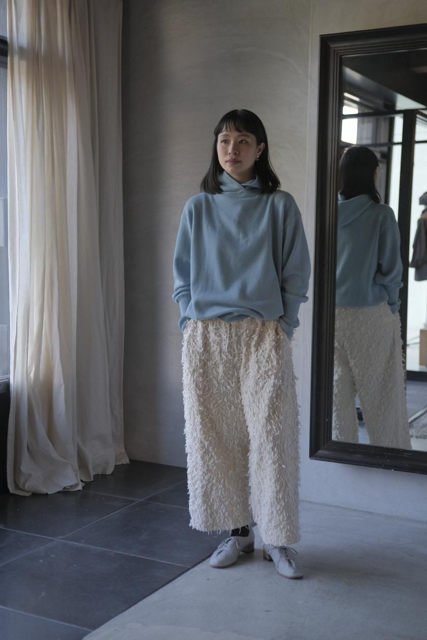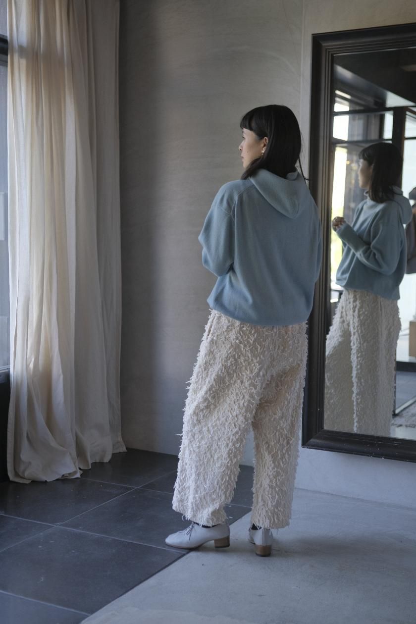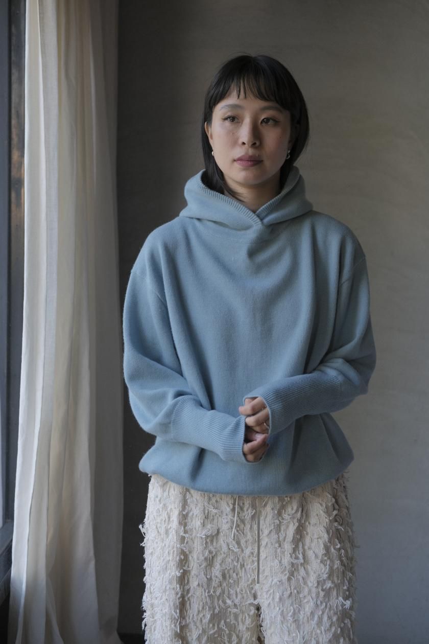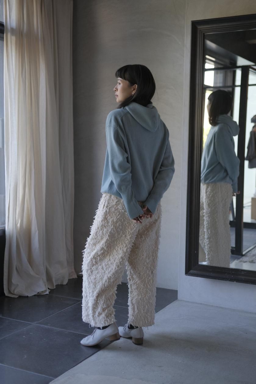 一見シンプルなデザインながら、袖のリブの長さやフードの立ち方、全体のシルエットなど、着用時に「ほかのパーカーとはちがうな」というディテールが立ち上がってくることにこだわったニットパーカーです。