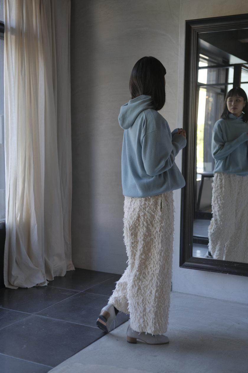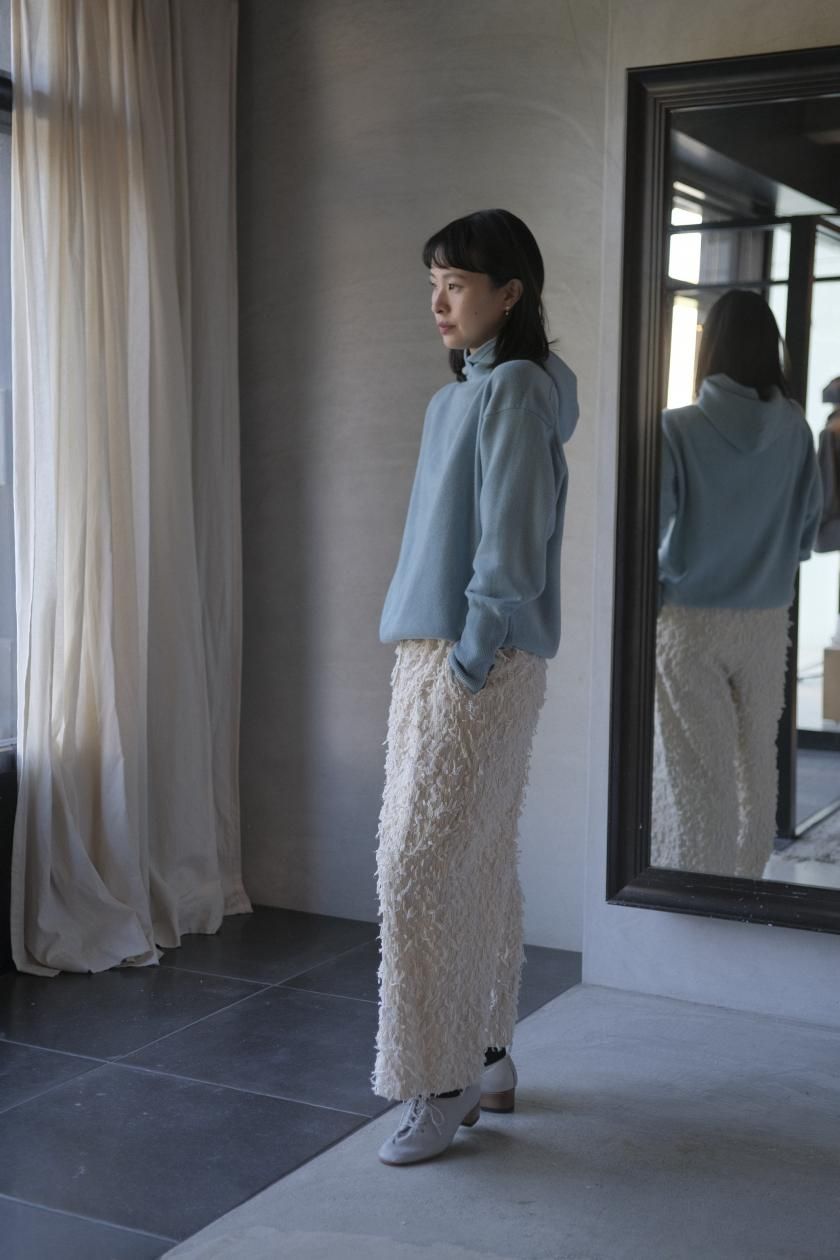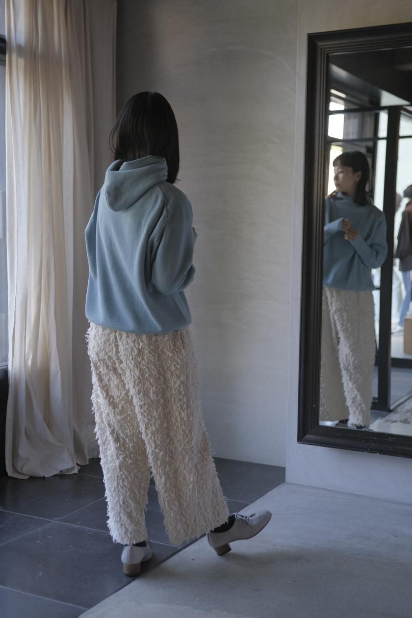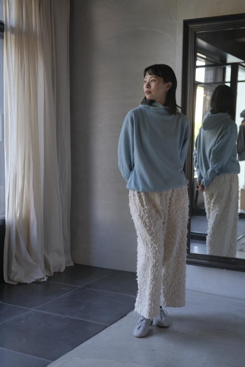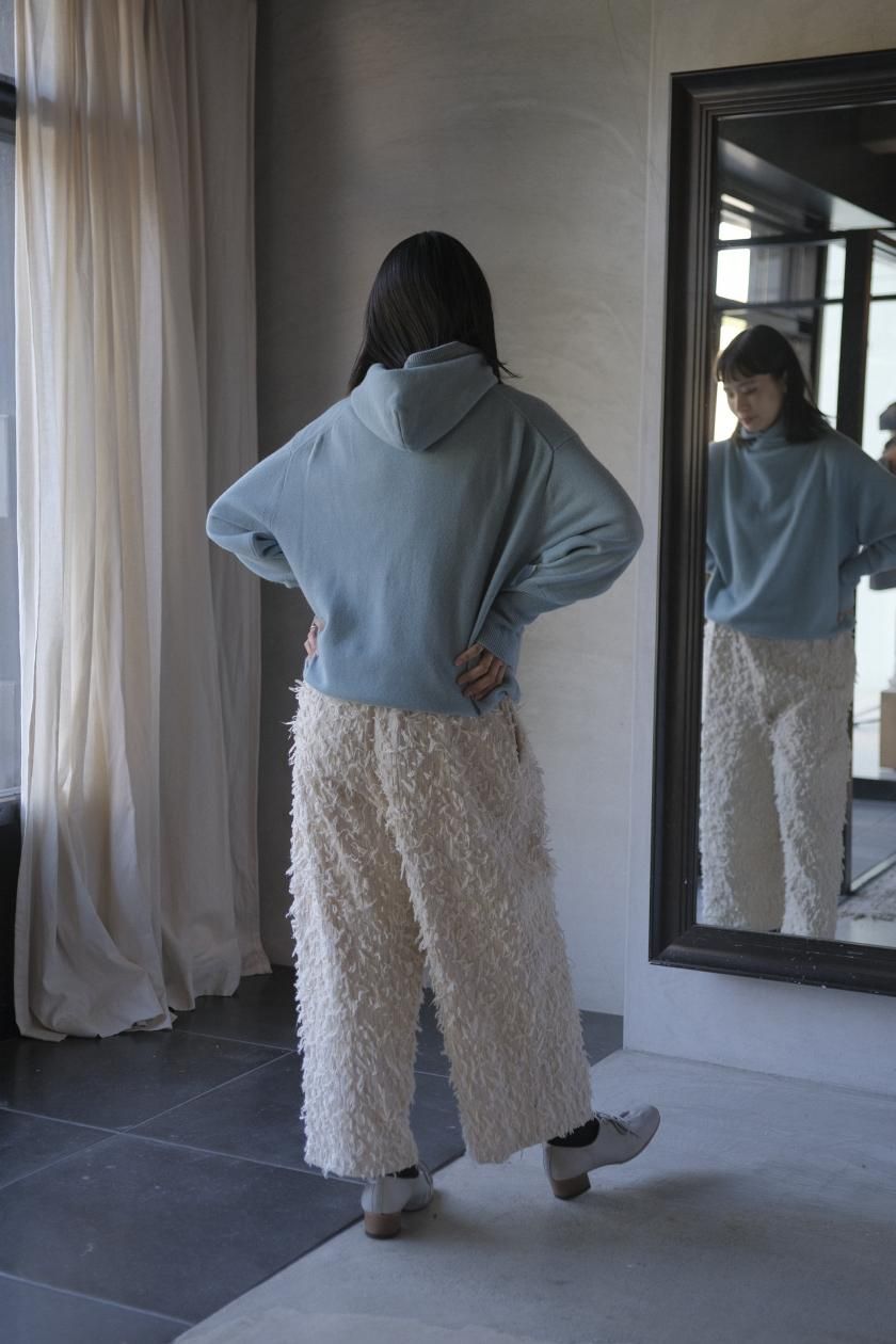 一見シンプルなデザインながら、袖のリブの長さやフードの立ち方、全体のシルエットなど、着用時に「ほかのパーカーとはちがうな」というディテールが立ち上がってくることにこだわったニットパーカーです。