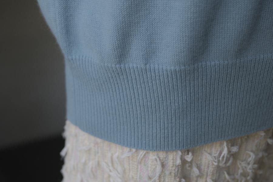 ・使用している糸は、紡毛(ぼうもう)のふくらみ感と、梳毛(そもう)のすっきり感を併せ持つ、セミ梳毛タイプのウール糸です。