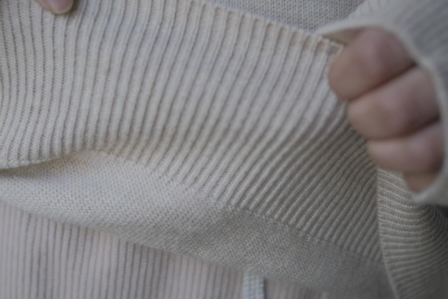 ・袖口リブは長め。安心感がある手首のフィット感です。