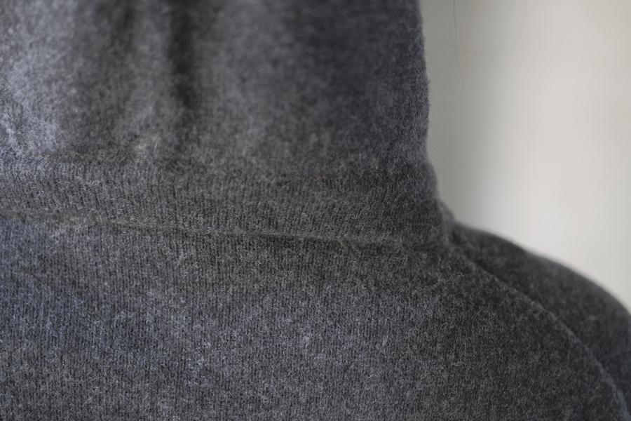 一見シンプルなデザインながら、袖のリブの長さやフードの立ち方、全体のシルエットなど、着用時に「ほかのパーカーとはちがうな」というディテールが立ち上がってくることにこだわったニットパーカーです。