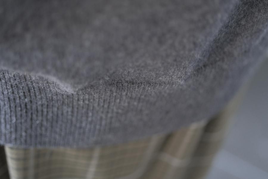 ・使用している糸は、紡毛(ぼうもう)のふくらみ感と、梳毛(そもう)のすっきり感を併せ持つ、セミ梳毛タイプのウール糸です。