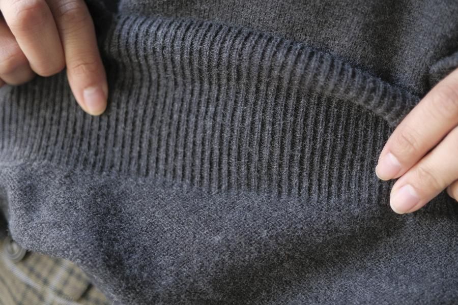 ・袖口リブは長め。安心感がある手首のフィット感です。