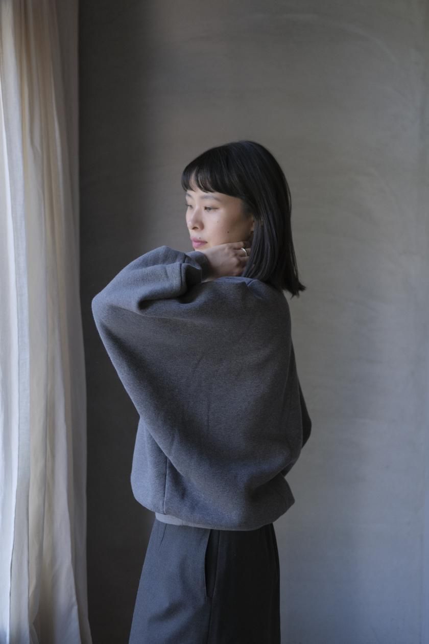 まるで毛布にくるまれているようなあたたかい起毛の裏毛スウェット素材で、バルーンカットソーをつくりました。