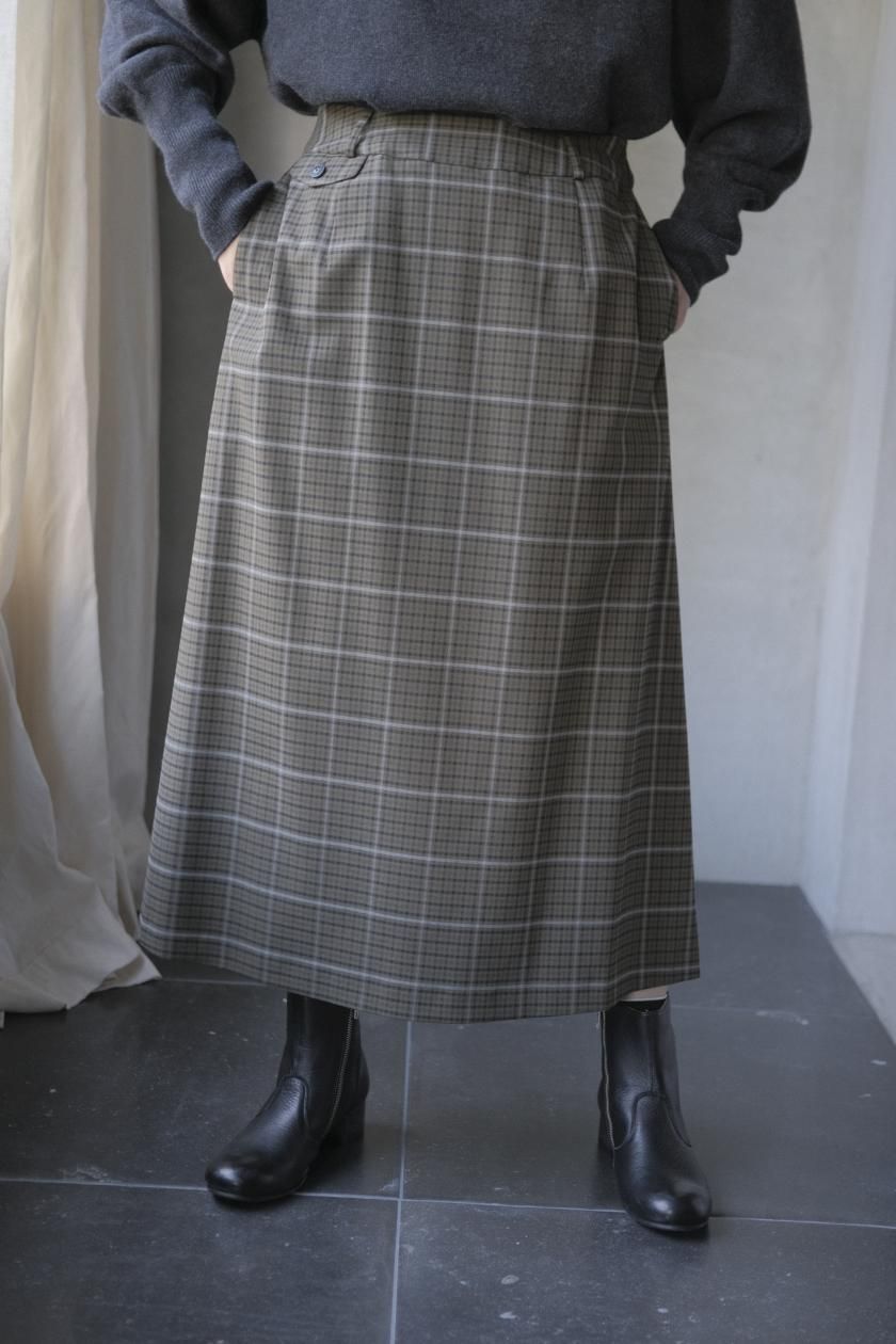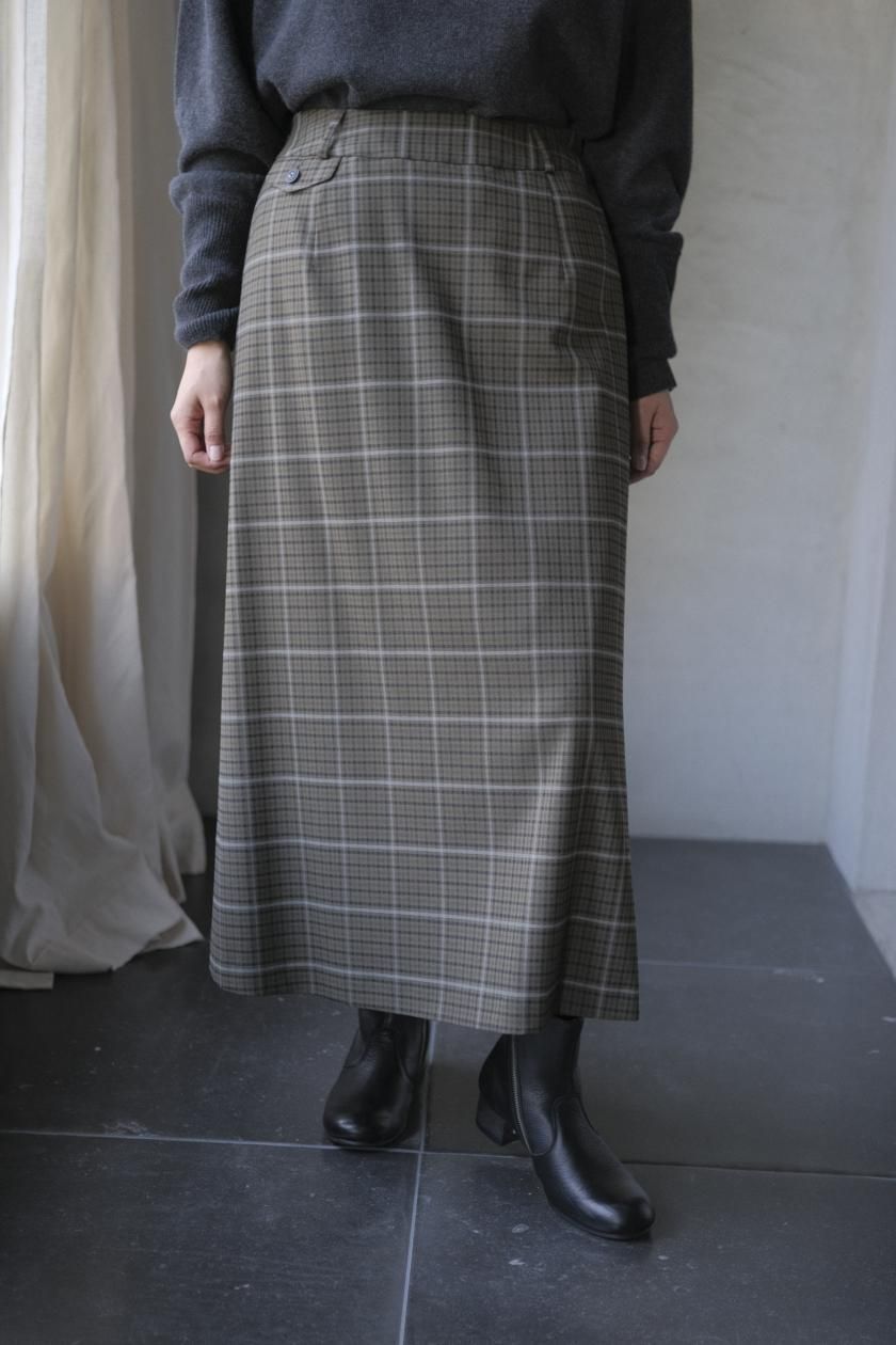 レトロクラシックな雰囲気が魅力のタイトなロング丈のAラインスカート。一見シンプルなデザインながらも、右ウエスト下のフラップ付きのポケットや、左脇のコンシールファスナー開きでありながら両サイドに切りポケットを配するなど、そのディテールにもこだわったスカートです。