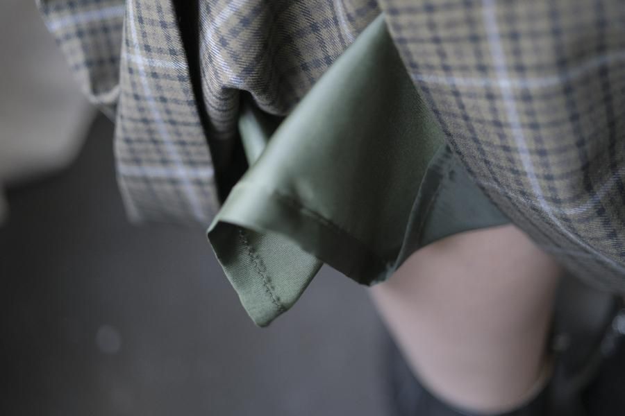 ・使用している布地は、ECOARCH|エコアーチ(※)素材のポリエステルレーヨン。梳毛ウールのような上品な表情とツヤ感が特徴です。