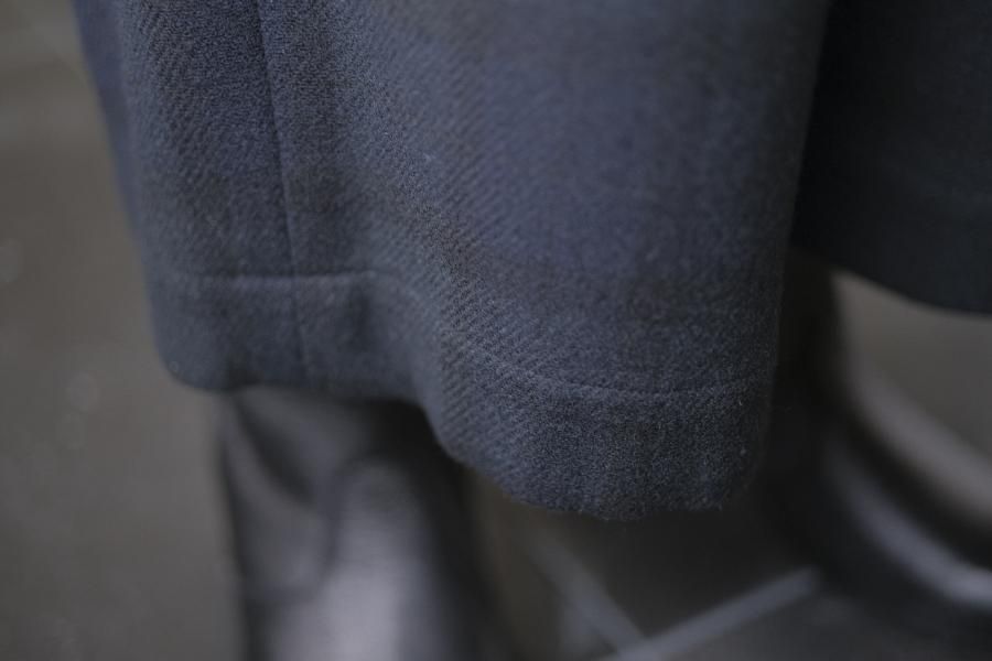 ・使用している布地は、尾州産の紡毛糸を使用したベーシックなウールナイロンフラノ地。中肉厚でソフトな風合いです。