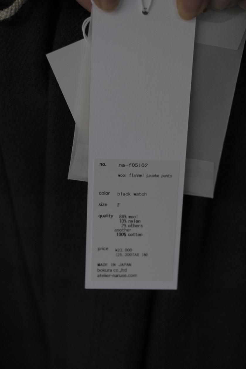 atelier naruse / wool flannel gaucho pants / black watch(black watch)