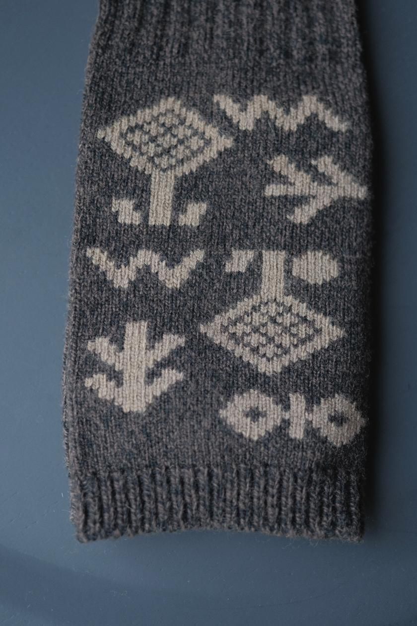・使用しているウール糸は、8番手の太糸。ウォーマーの厚みを生むローゲージで編んだ、保温性に優れるあたたかなアイテムに仕立てています。