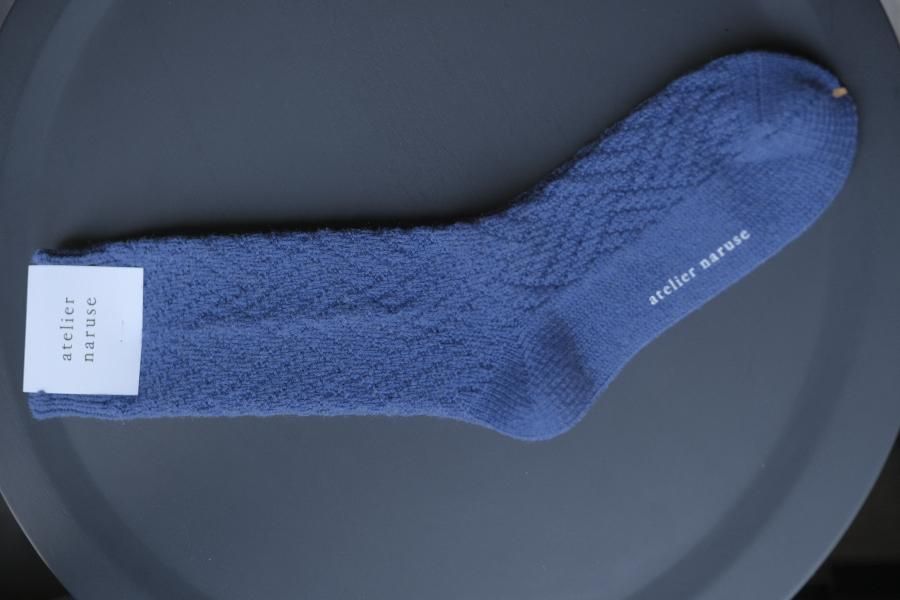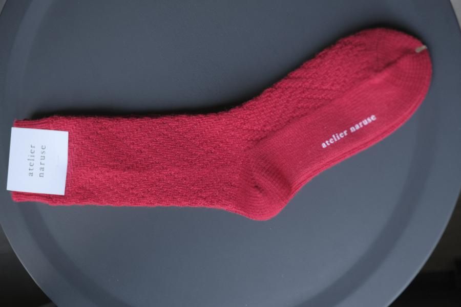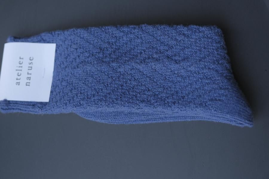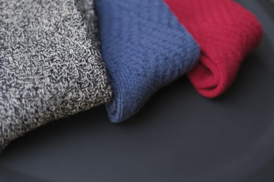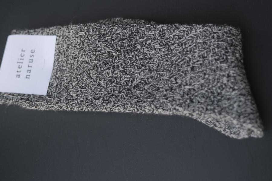 ・また、防縮加工を施した紡毛ウール糸を使用しているため洗濯を重ねても毛玉ができにくく、その扱いやすさもうれしいソックスです。