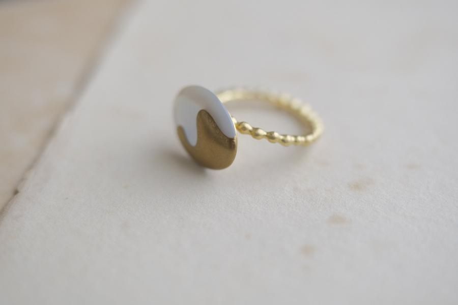 Classic ko / Melt oval gold dot-line ring(brass/K18GP) フリー