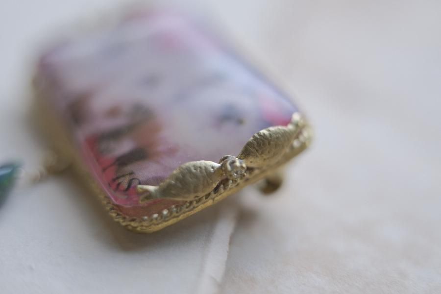 **ヴィンテージ切手を使用した、ネックレス**