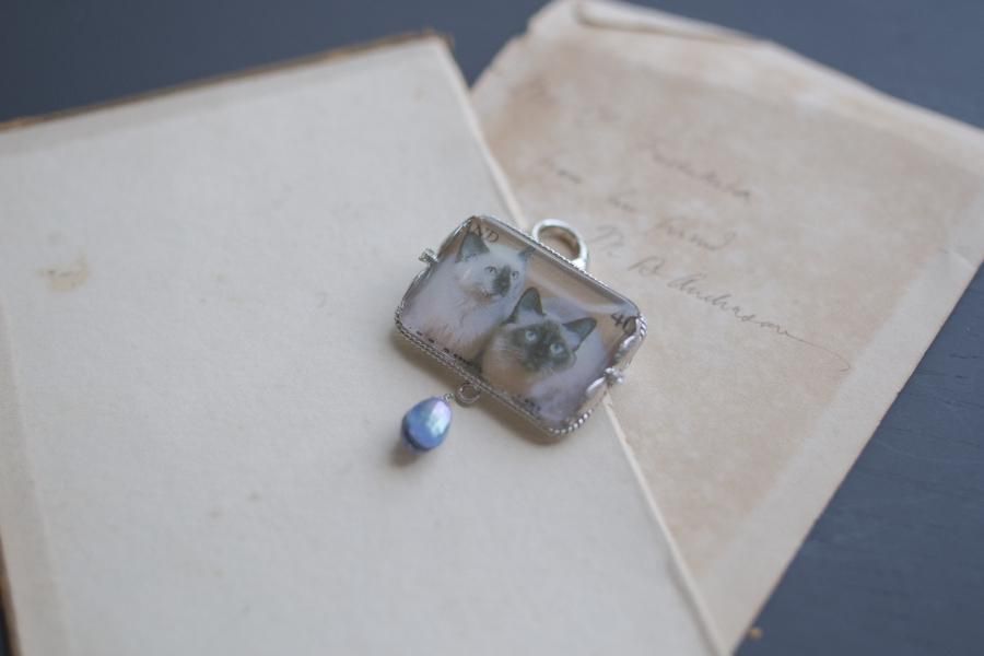 未使用で状態の良い切手がペンダントトップになった一点ものです。