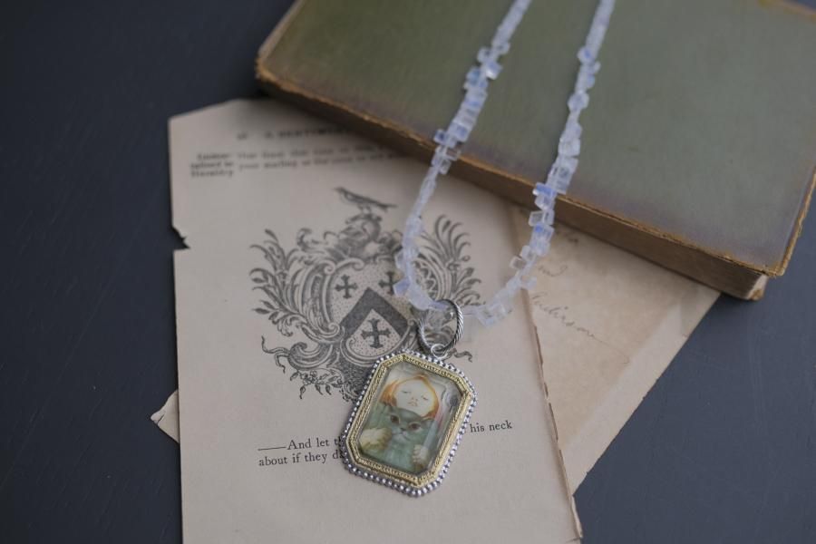 未使用で状態の良い切手がペンダントトップになった一点ものです。