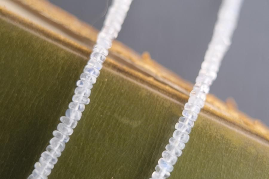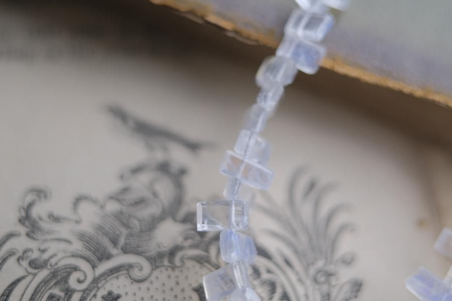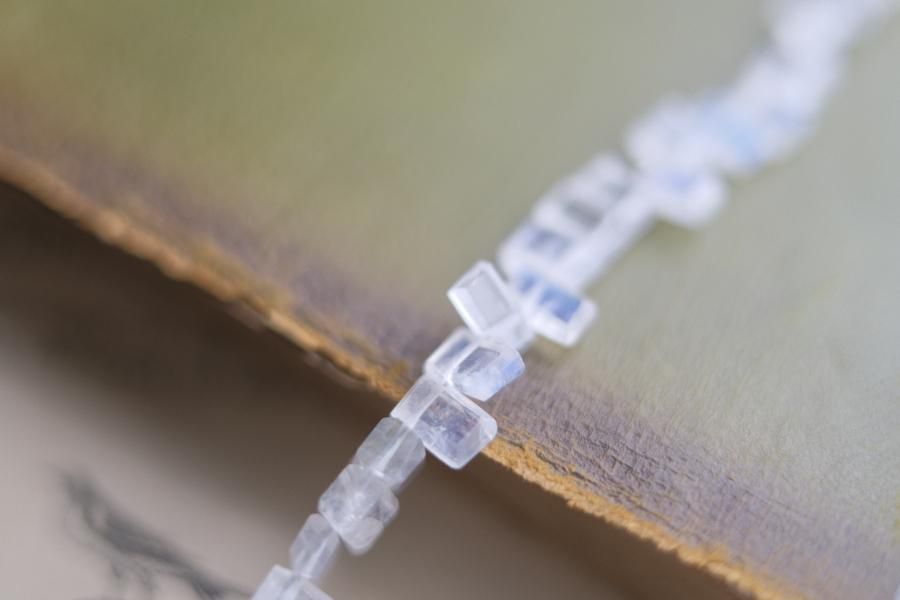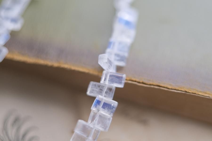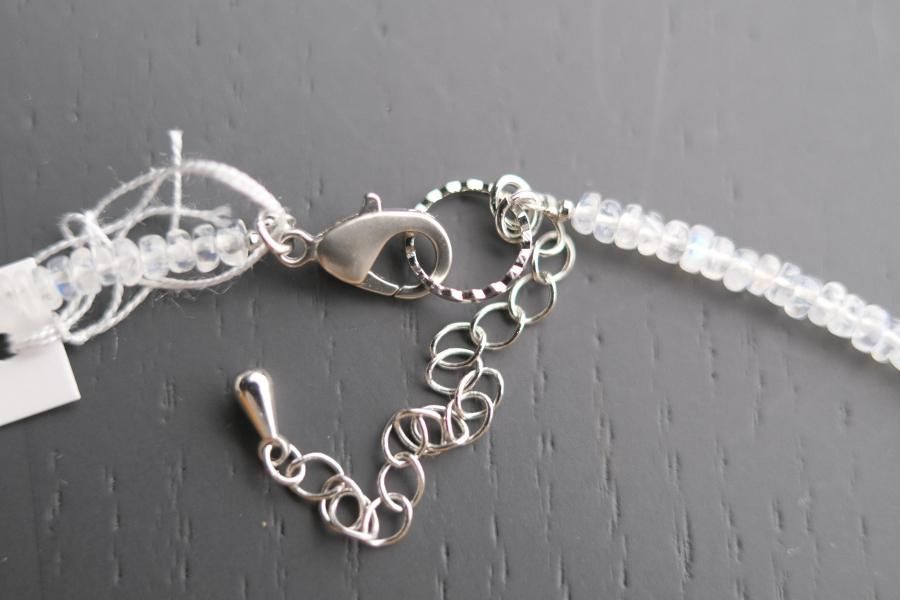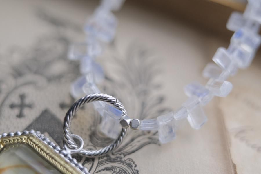 チェーンはパール、珊瑚、クォーツ(水晶)などの天然石を使用しており、