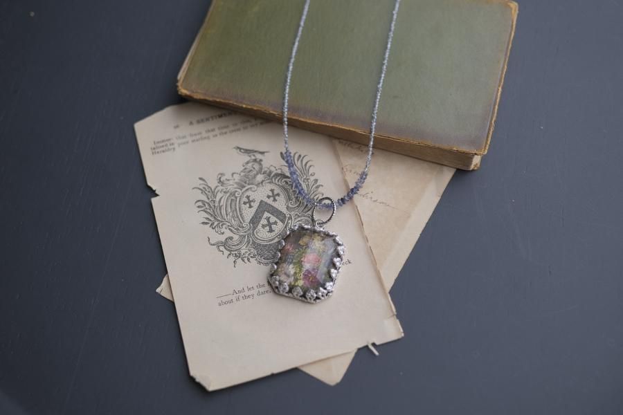 **ヴィンテージ切手を使用した、ネックレス**