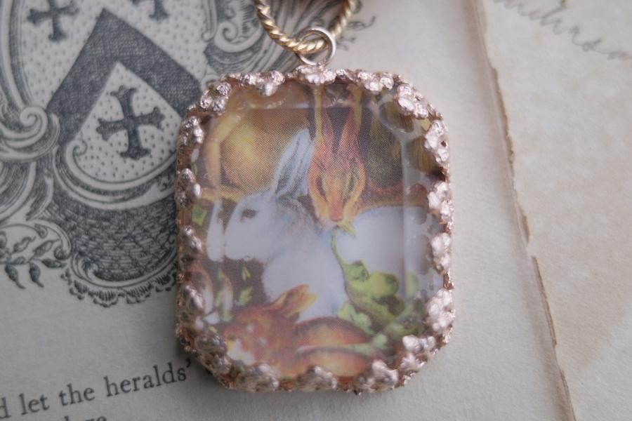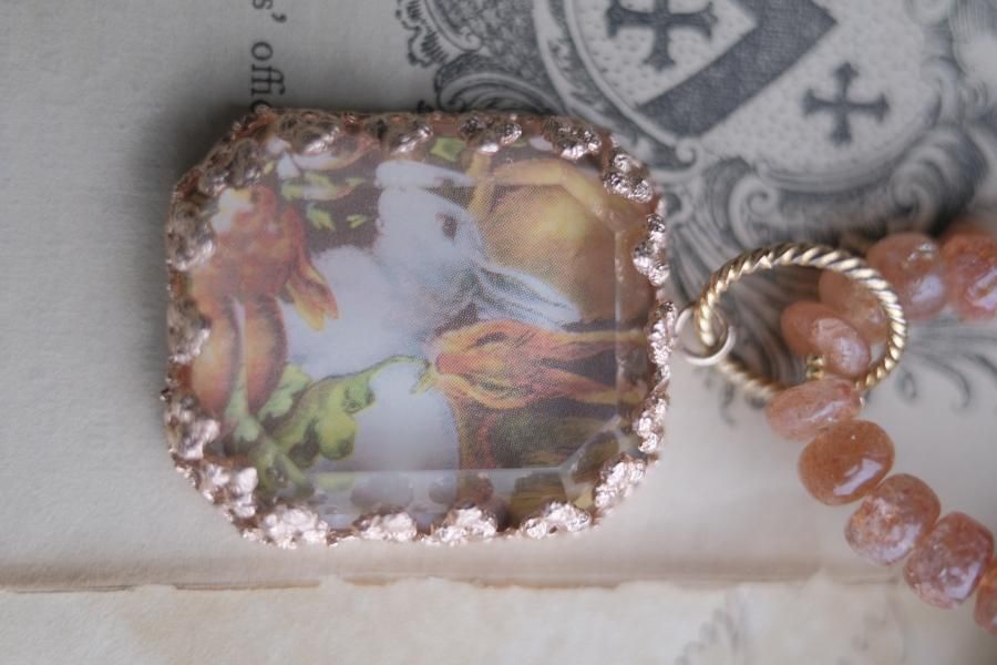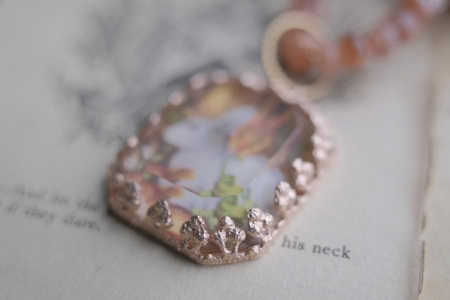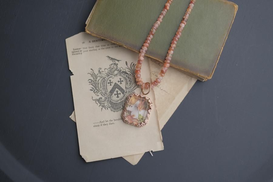 **ヴィンテージ切手を使用した、ネックレス**