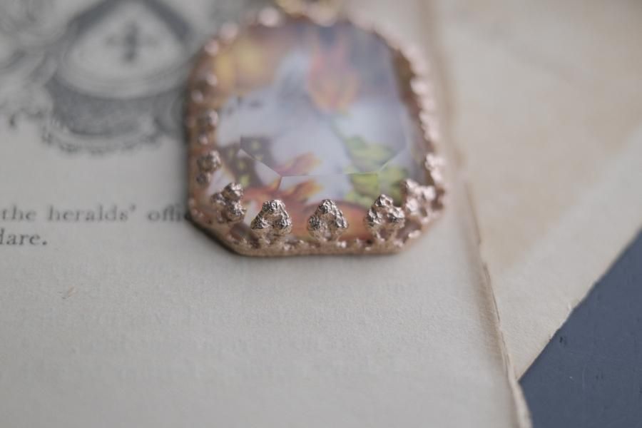 未使用で状態の良い切手がペンダントトップになった一点ものです。