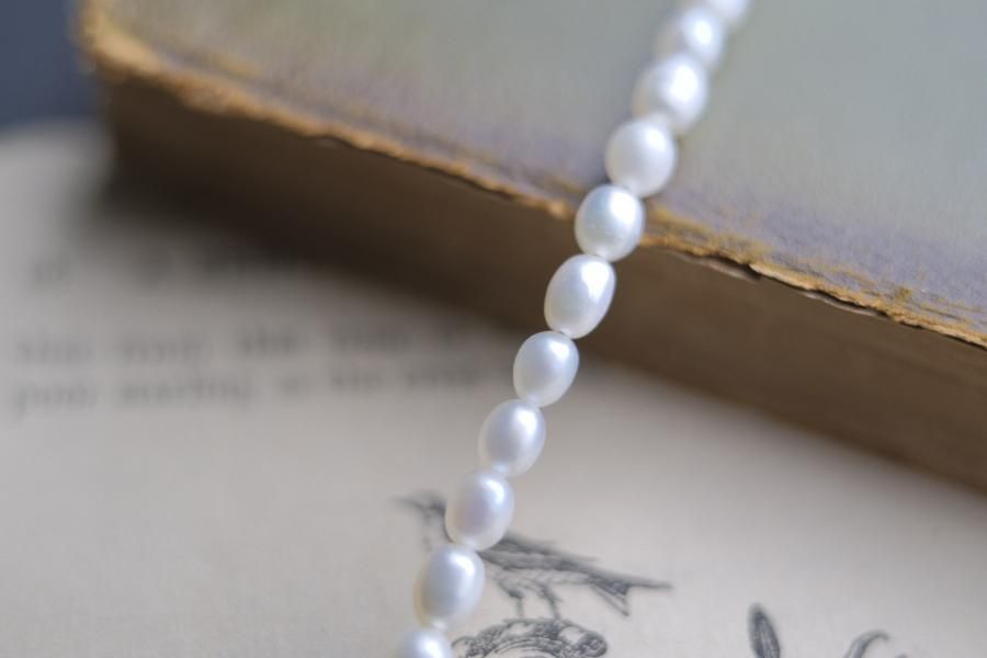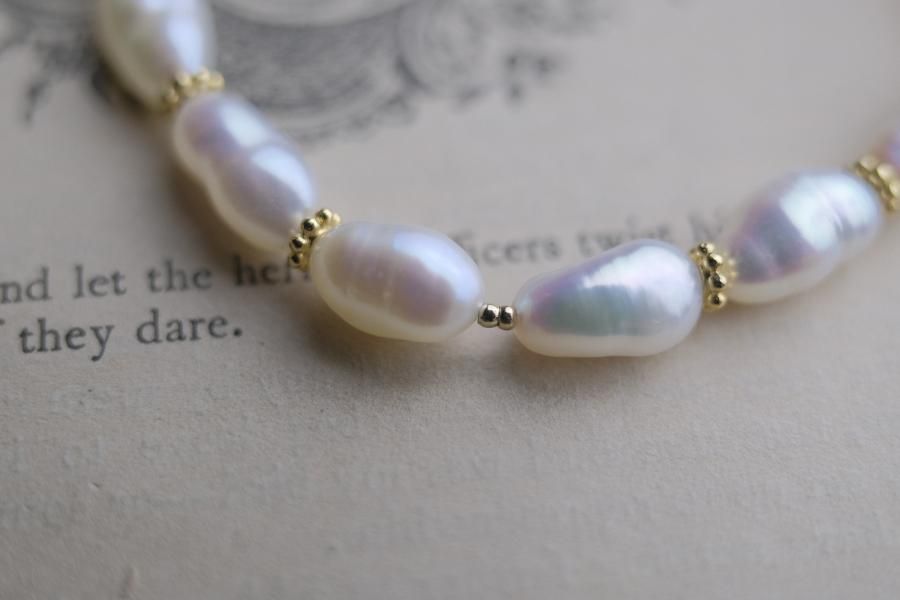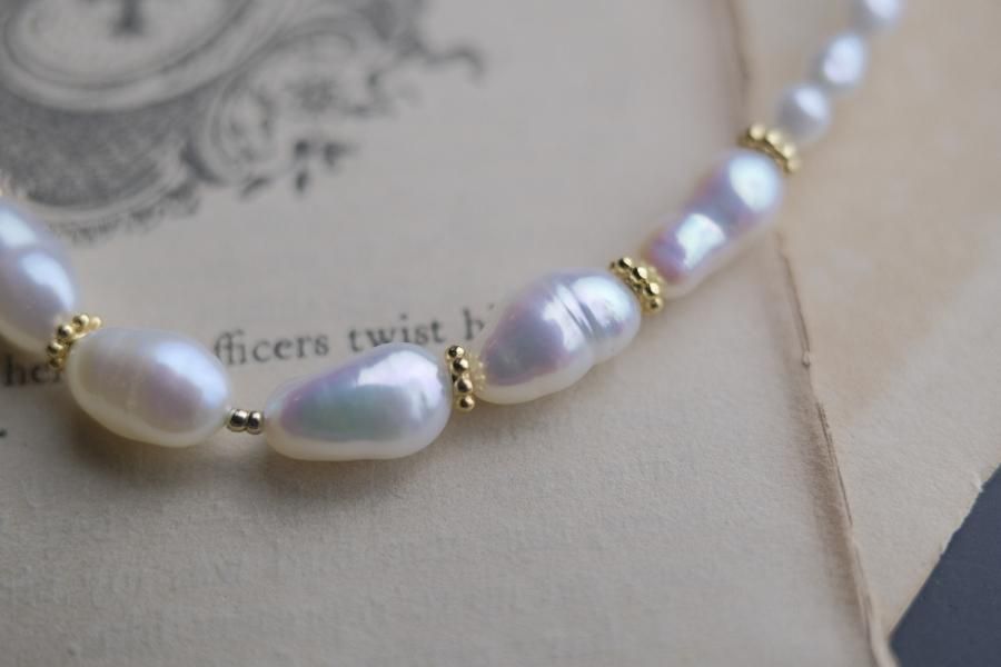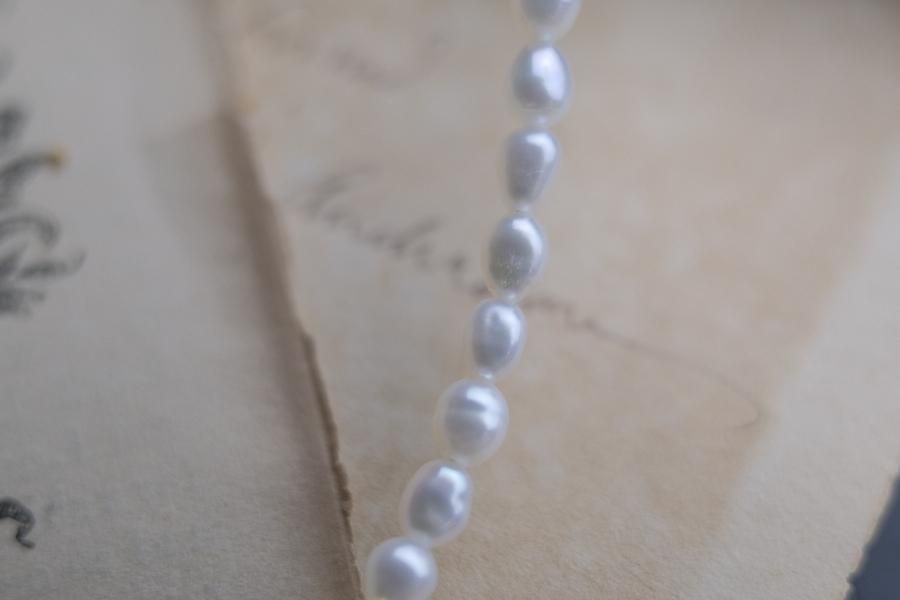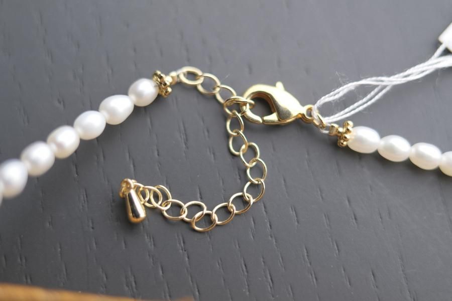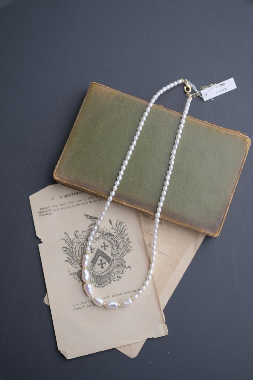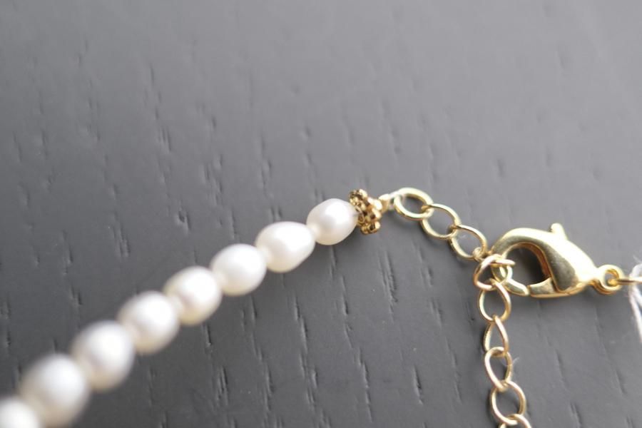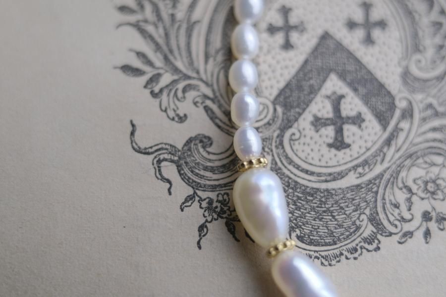チェーンはパール、珊瑚、クォーツ(水晶)などの天然石を使用しており、