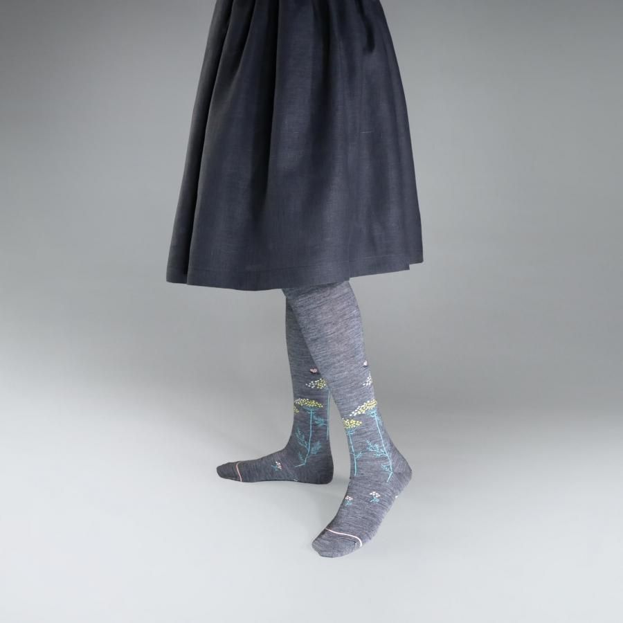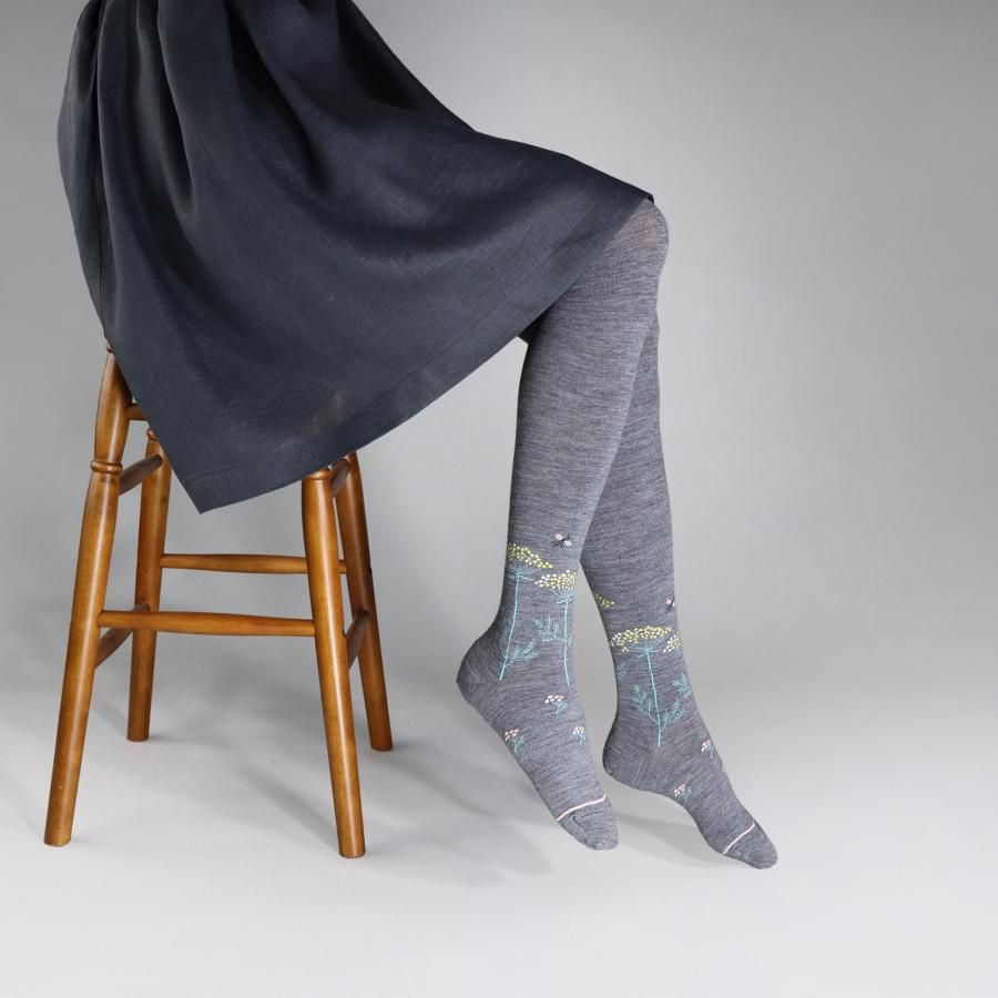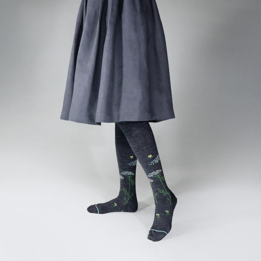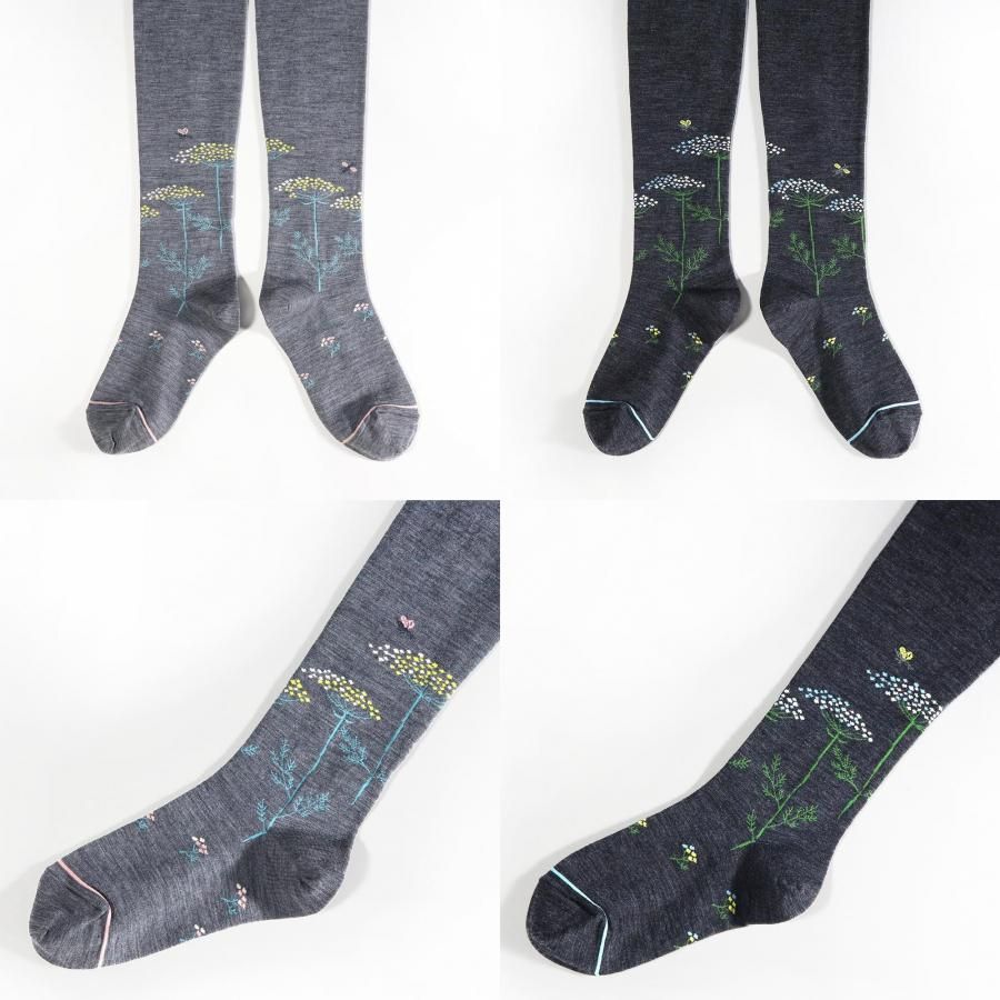 野原に自由に咲きほこる“ワイルドキャロット”の花を描いたタイツ。