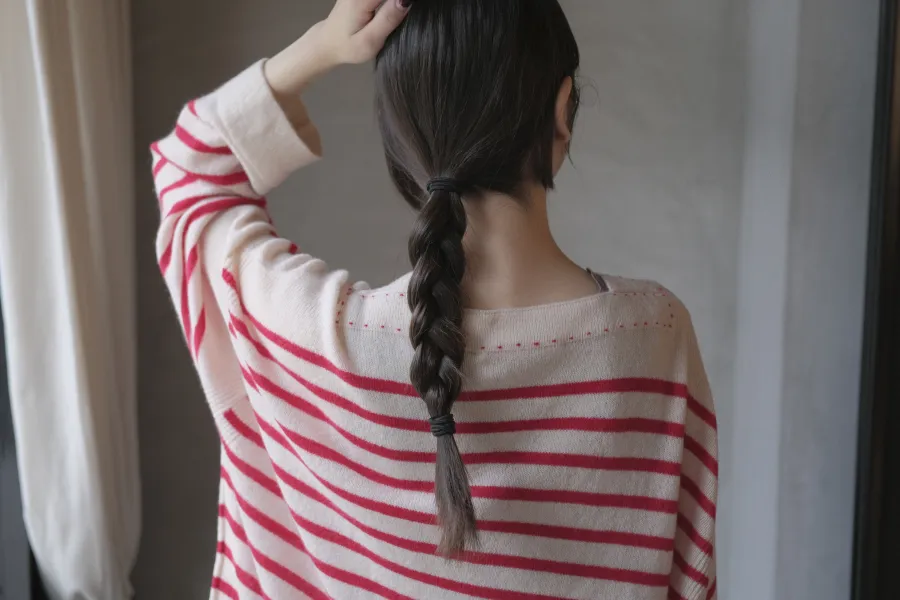 細いほどしなやかな光沢がでて、肌触りも柔らかい最上級品のホワイトカシミヤの原料を使用しております。