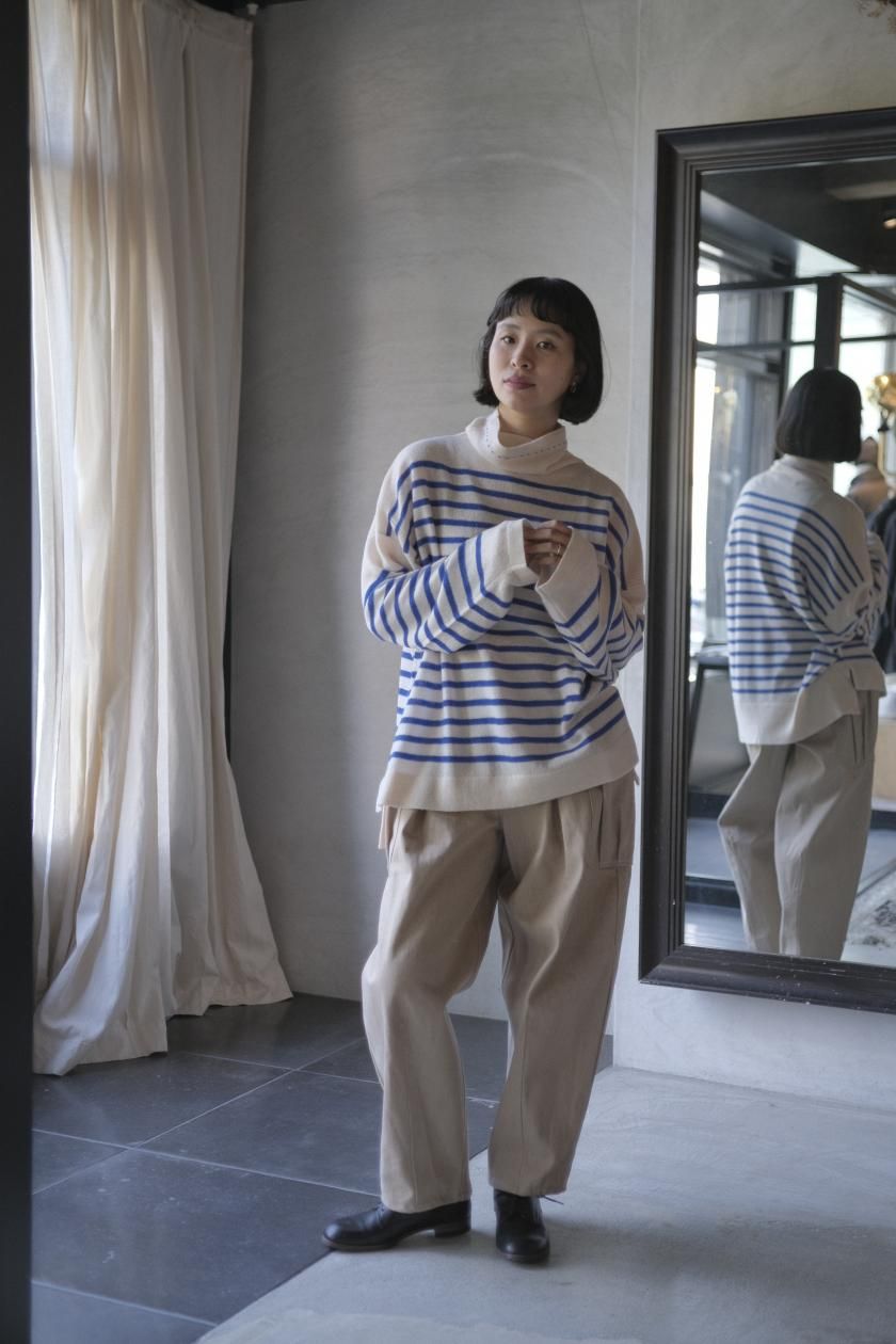 TOWAVASE / maison de montagne / Basque (バスク) / pullover C(ivory × blue)