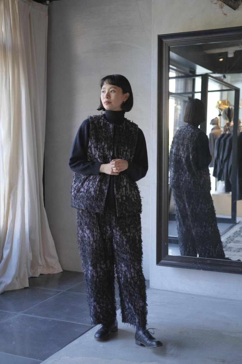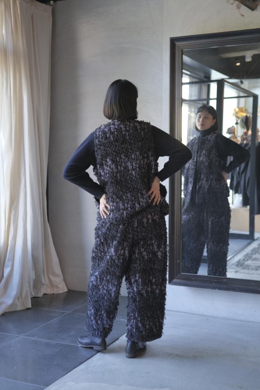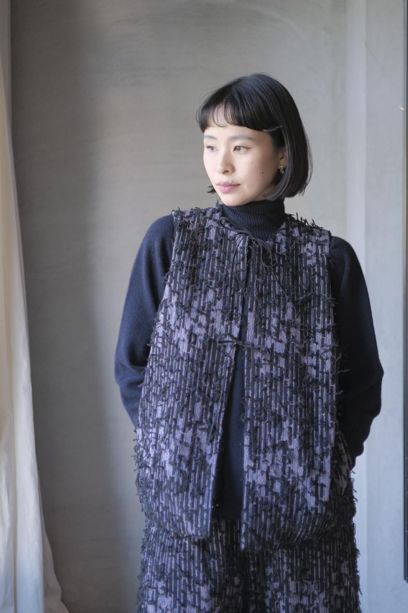 裏側はウールのボアを使用し、リバーシブルで着用いただけるベスト。