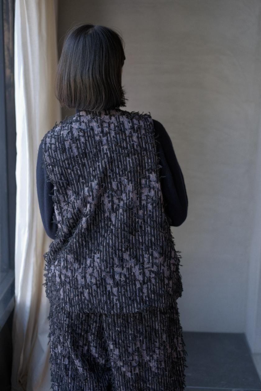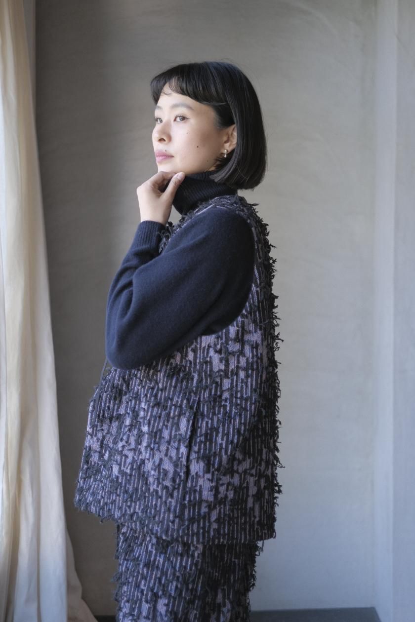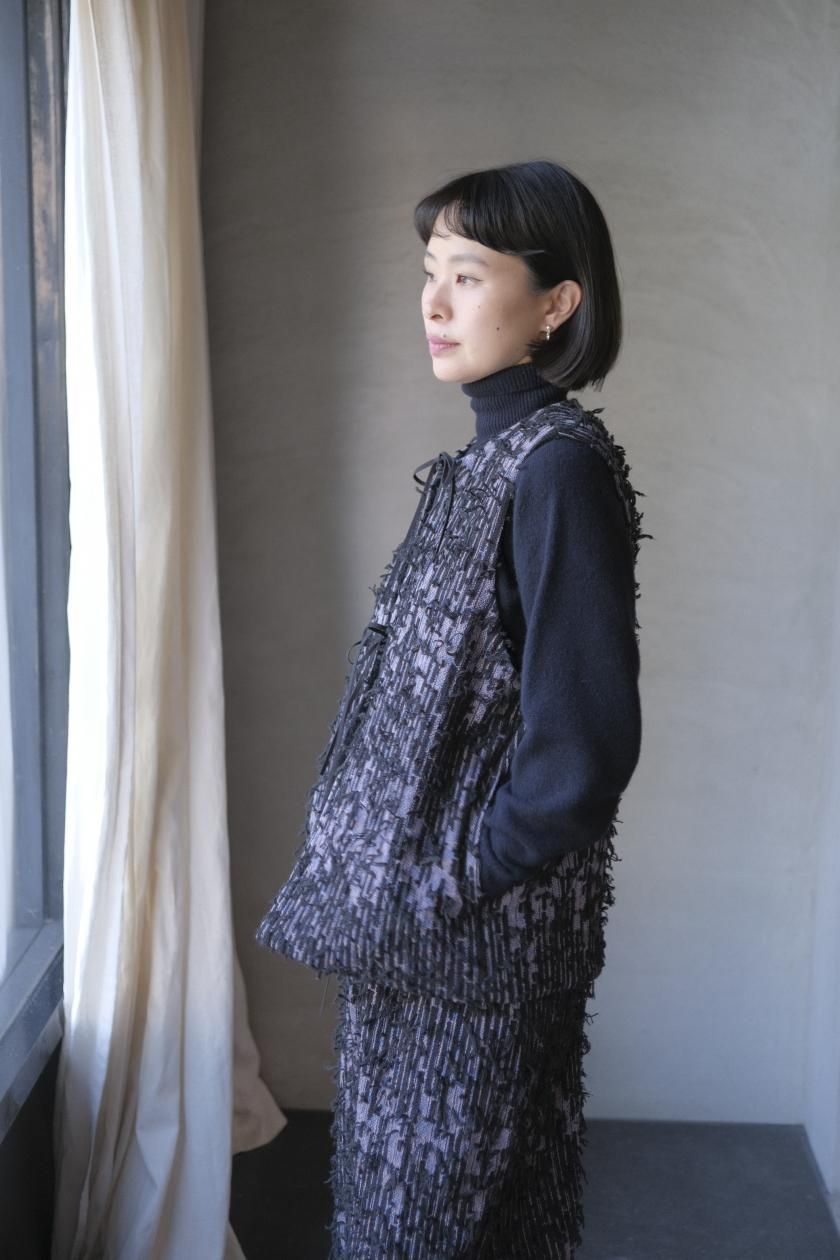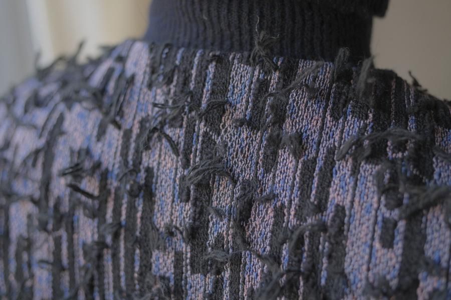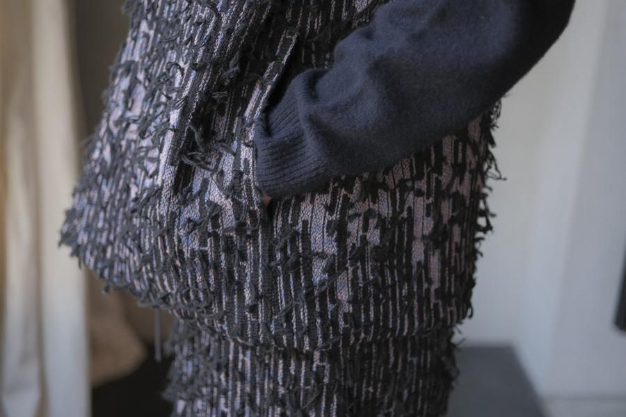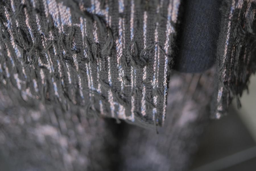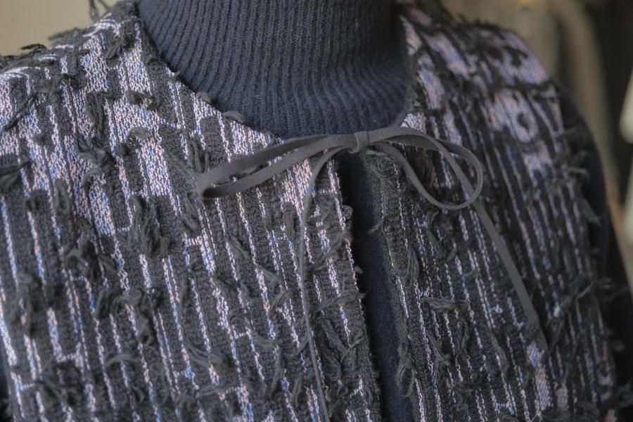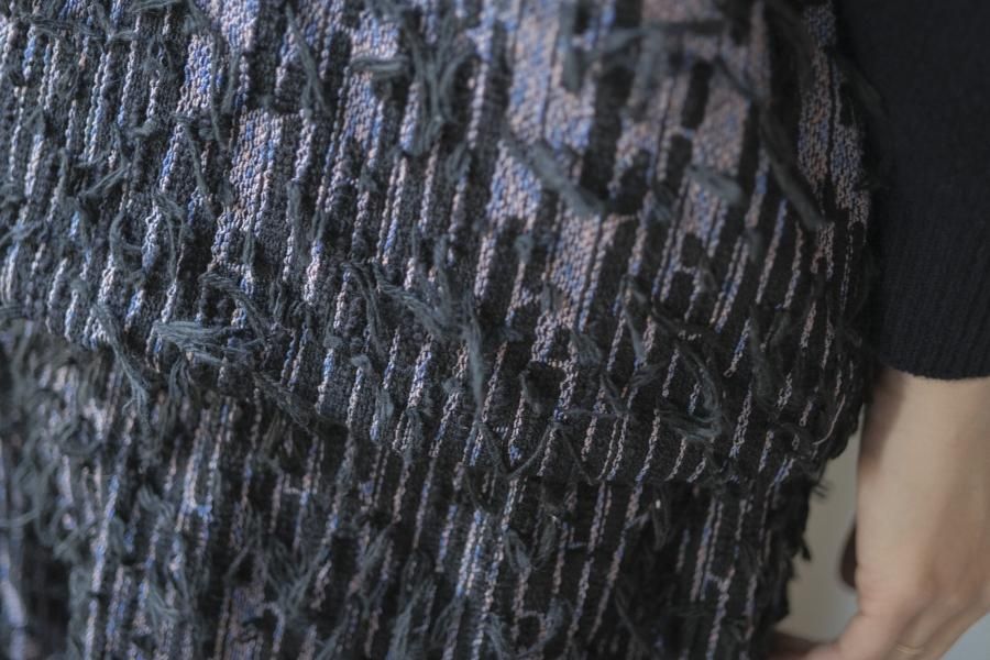 ツイードのニットのような雰囲気のあるカットジャカードのテキスタイル。