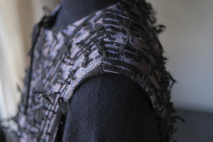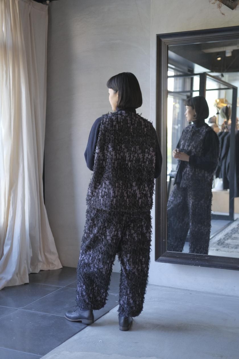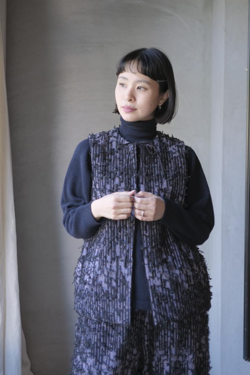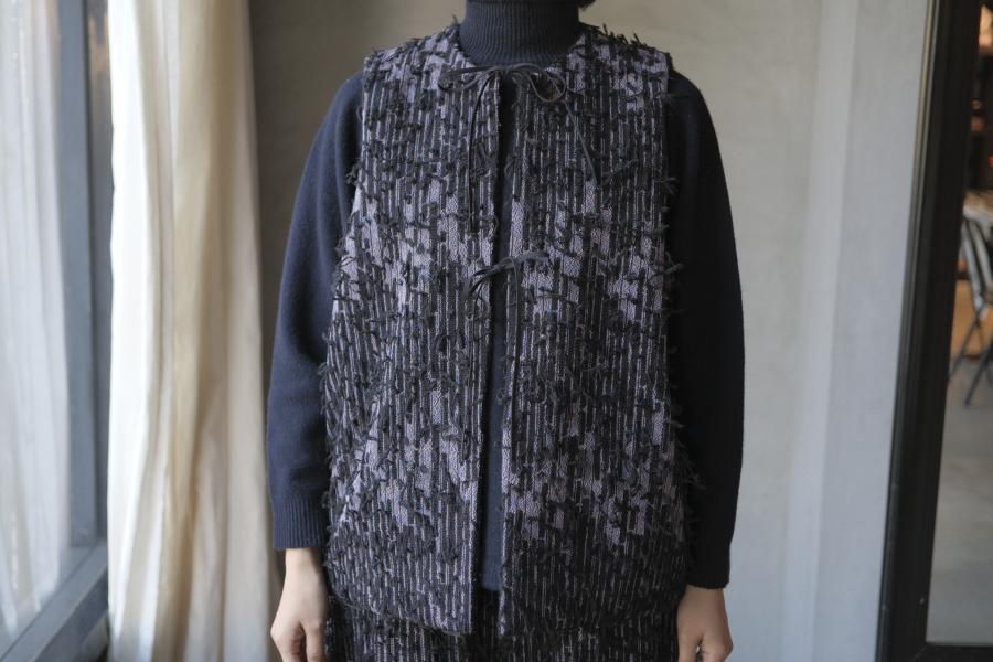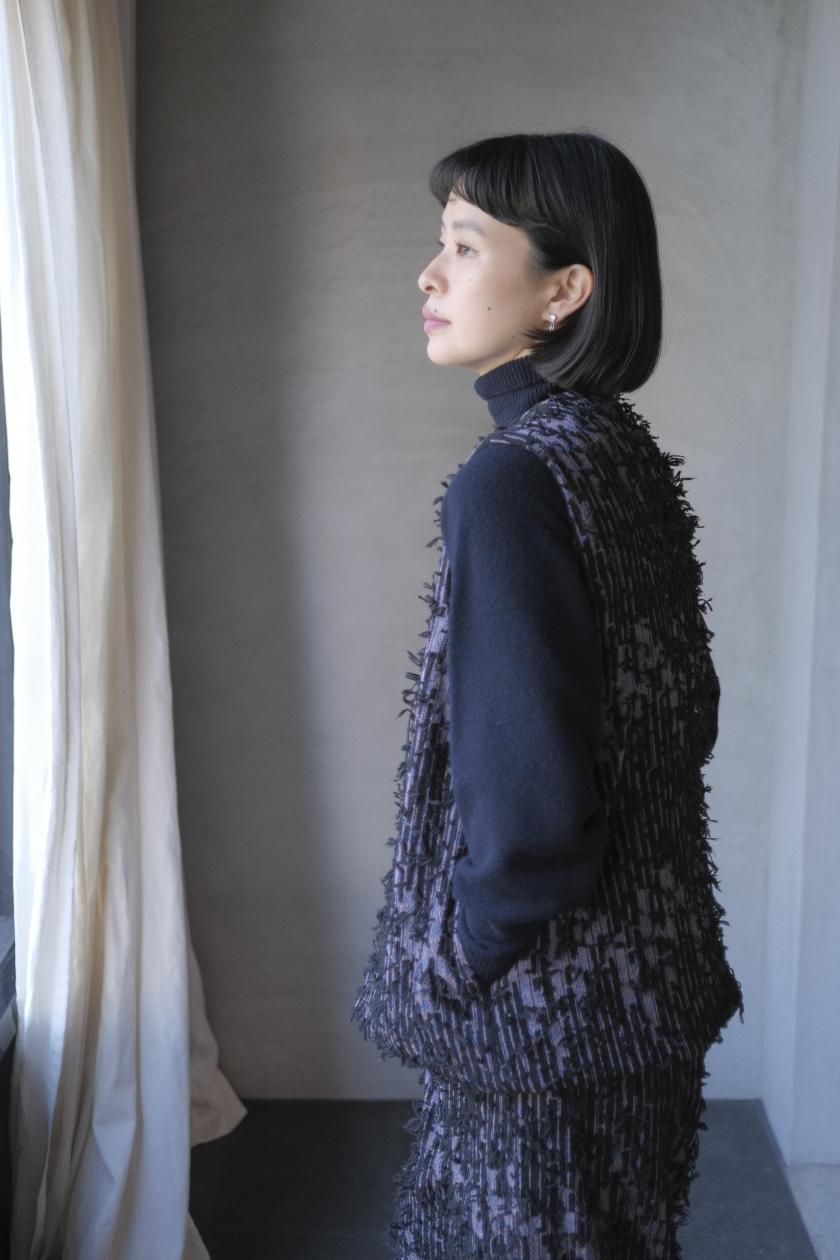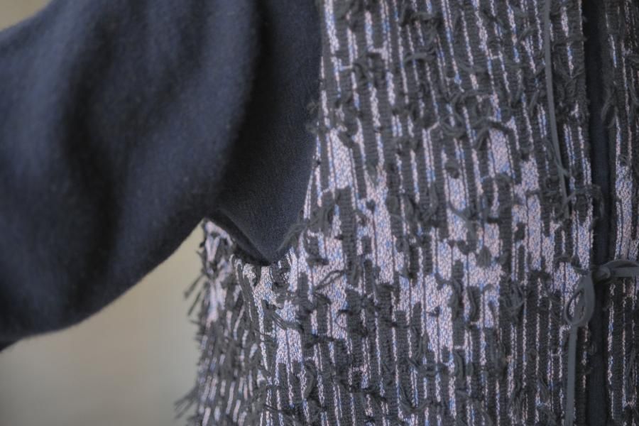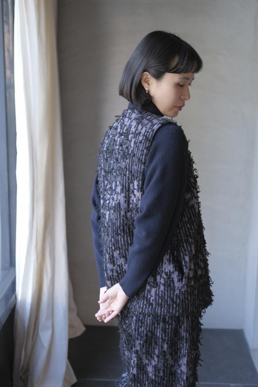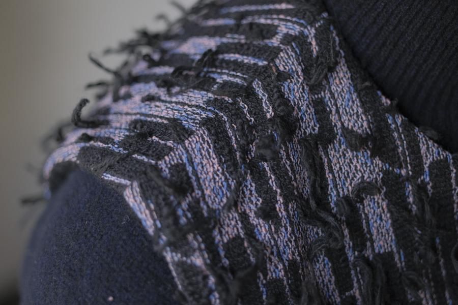 ツイードのニットのような雰囲気のあるカットジャカードのテキスタイル。