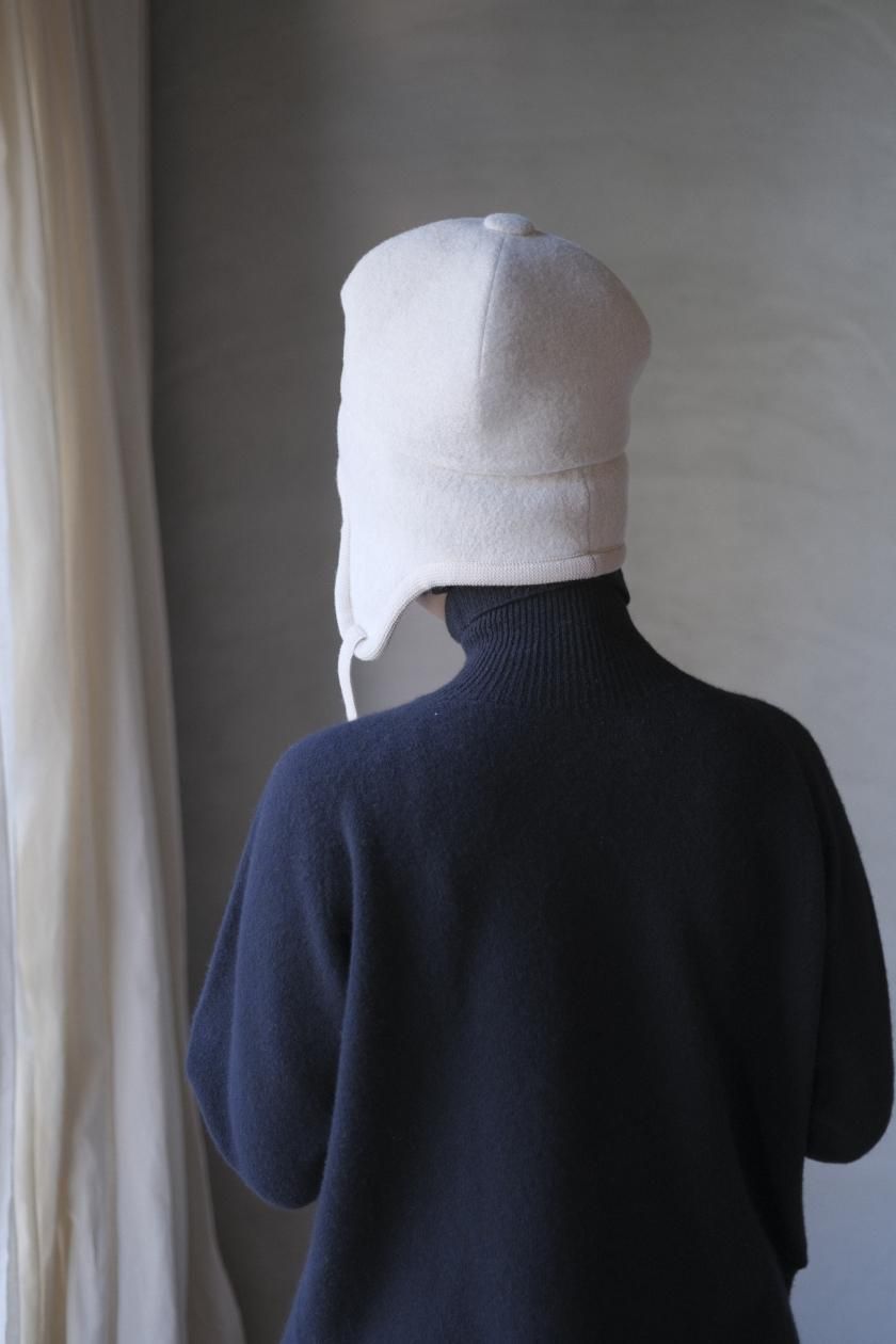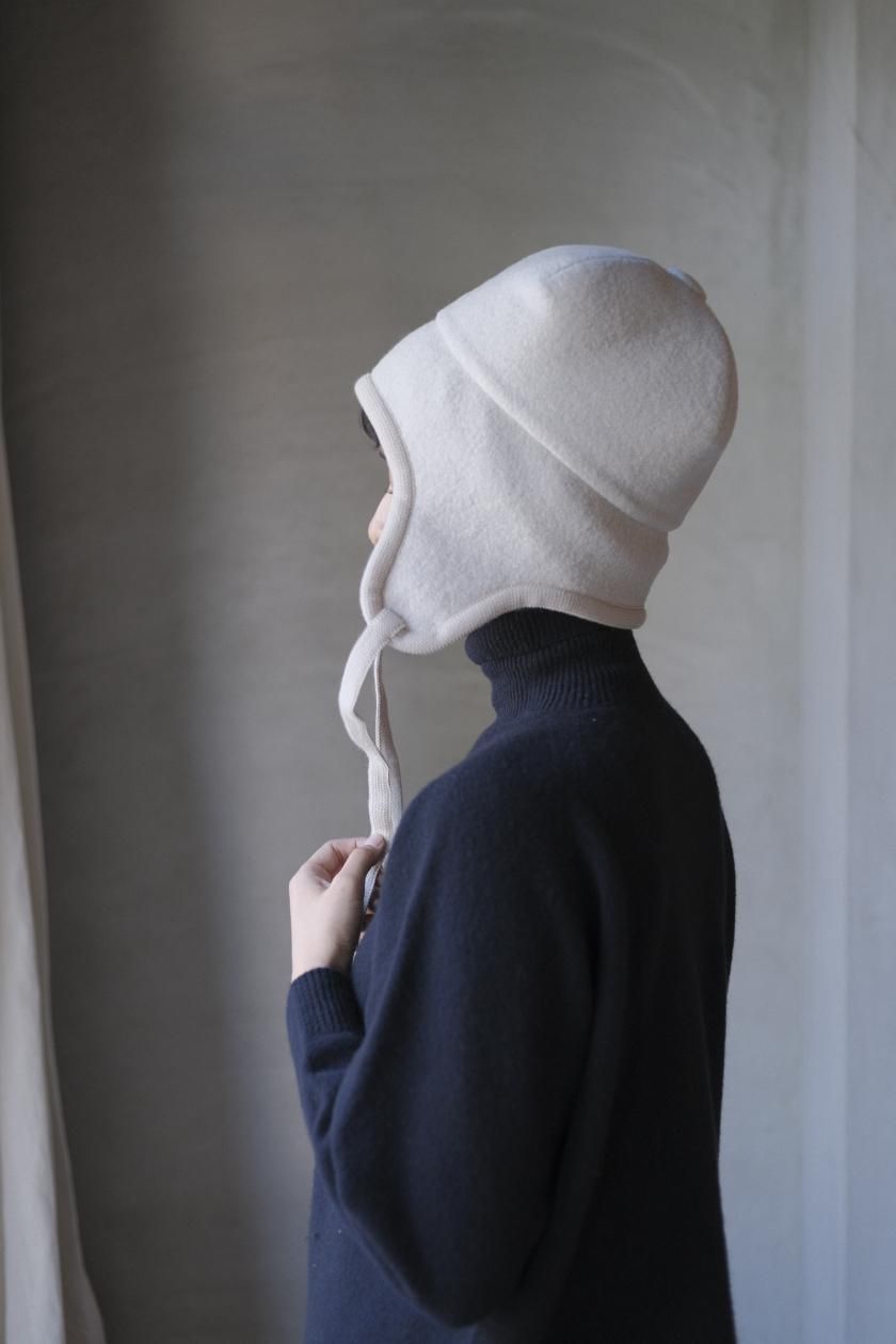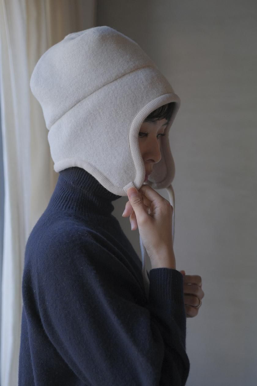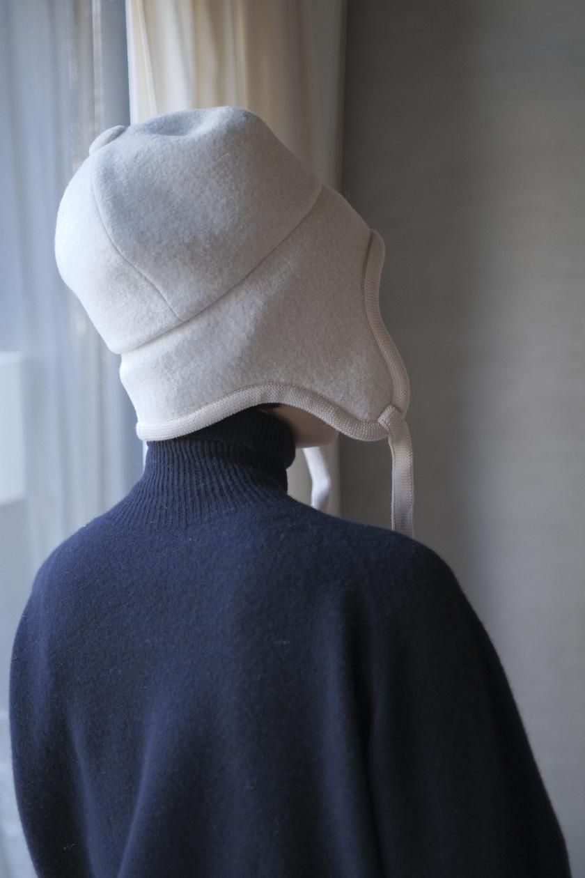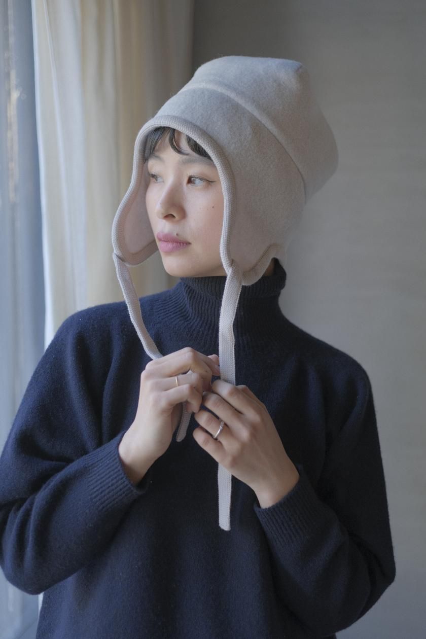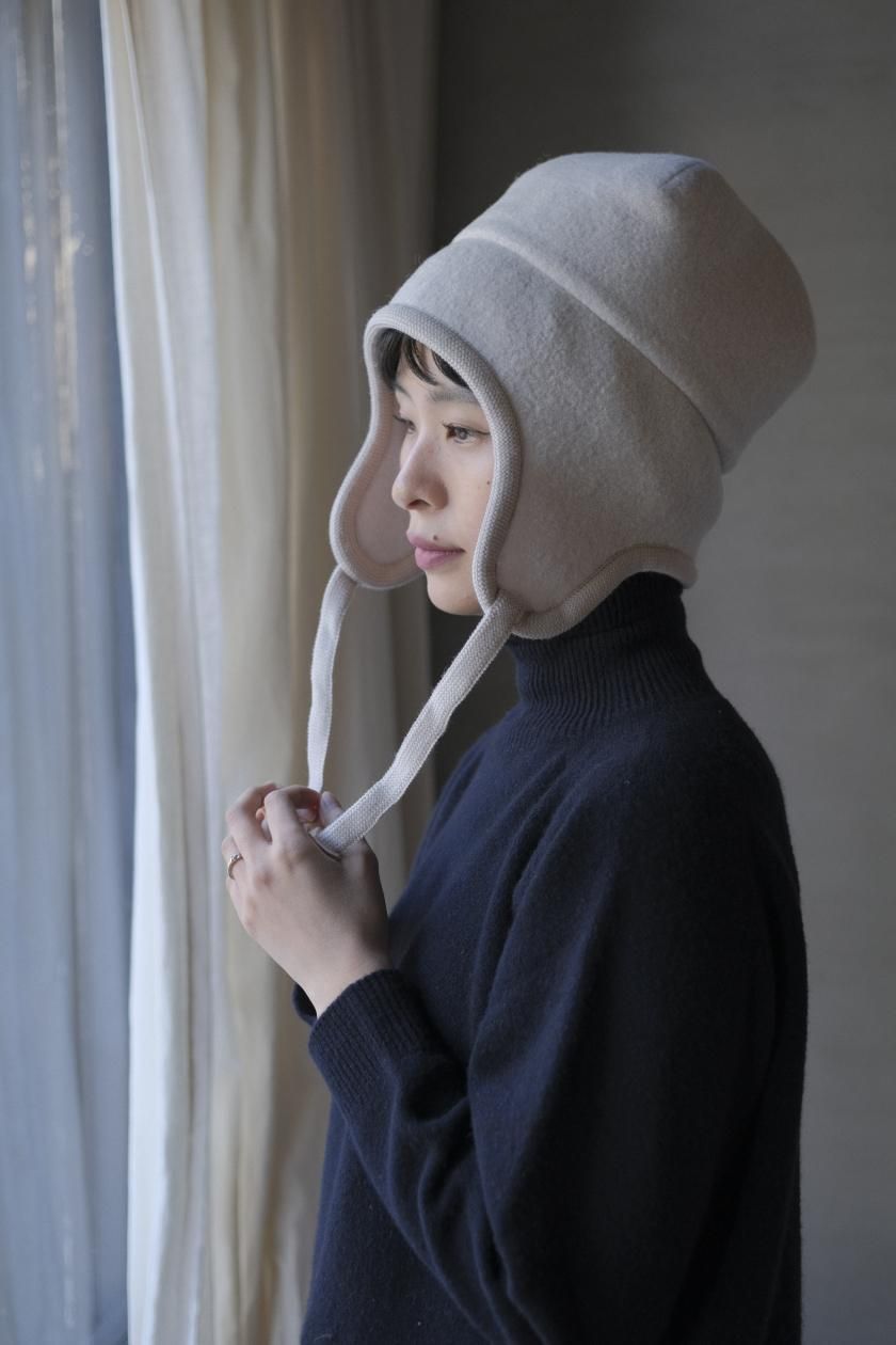 Sashikiオリジナルのトラッパーキャップです。通称、飛行帽、フライトキャップ、トラッパー帽とも言われる耳当てつきの帽子ですが、こちらの商品はツバのないタイプになります。その為、少しニットキャップのような雰囲気もあり、ツバのあるタイプよりもメンズっぽさが軽減されています。表地はウールリングヤーンを圧縮した生地を使用していますのでふっくらとした印象です。寒い日は耳まで入れるのもお勧めですので通常より少し大きめでも良いかもしれません。すっぽりと被って暖かくお過ごしください。