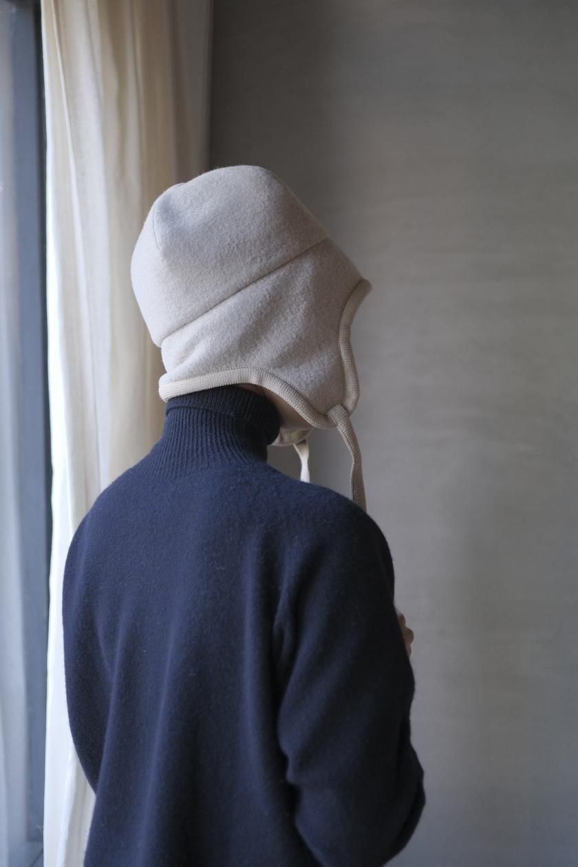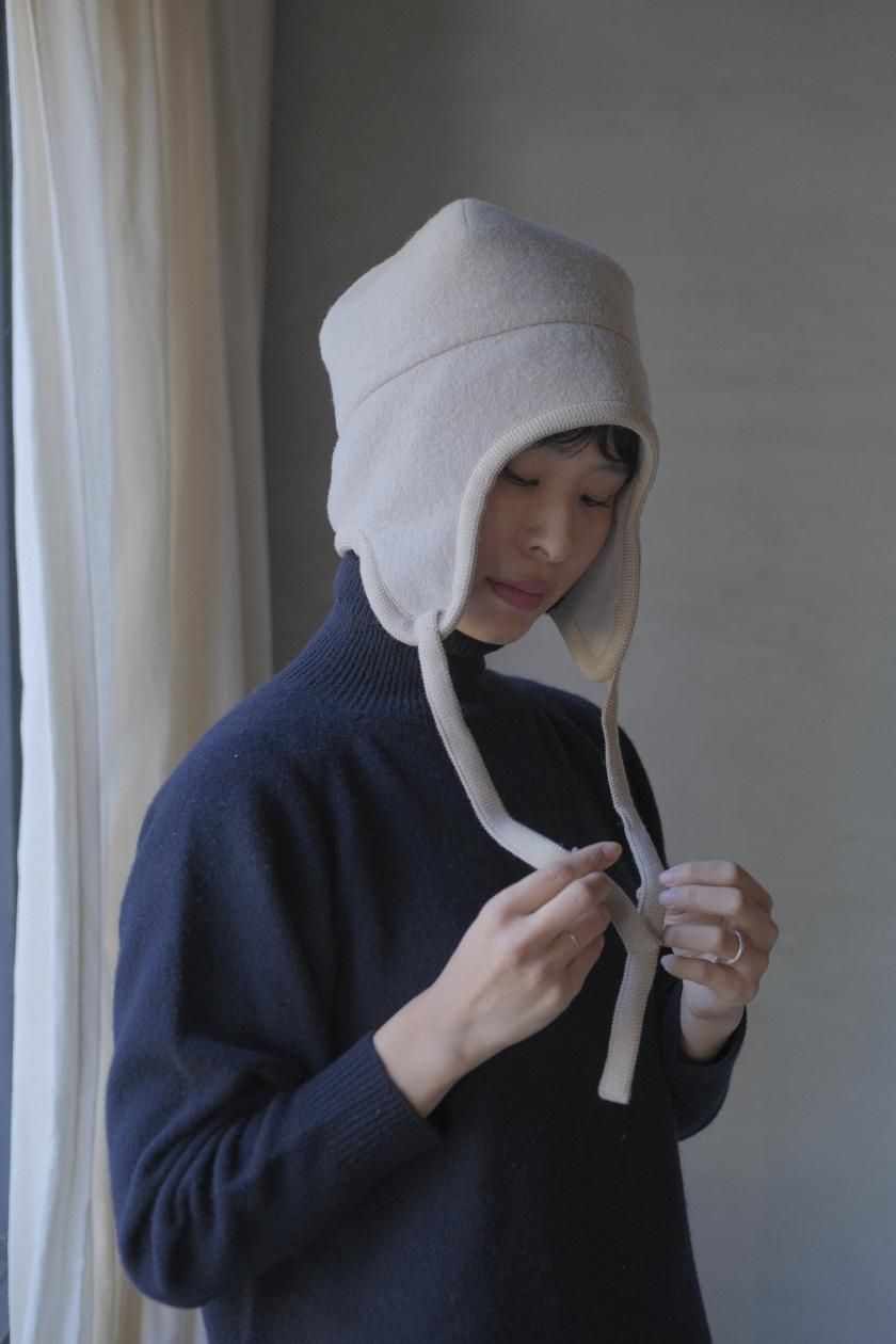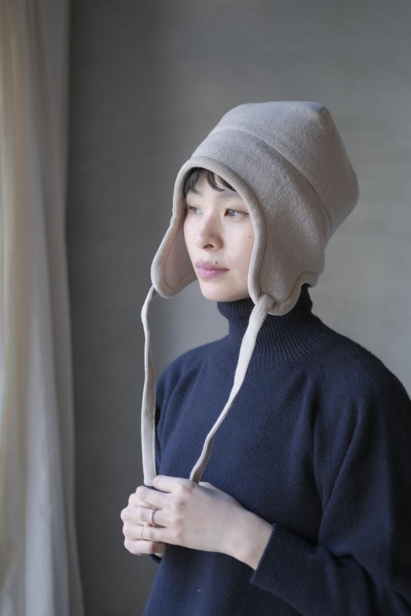 Sashikiオリジナルのトラッパーキャップです。通称、飛行帽、フライトキャップ、トラッパー帽とも言われる耳当てつきの帽子ですが、こちらの商品はツバのないタイプになります。その為、少しニットキャップのような雰囲気もあり、ツバのあるタイプよりもメンズっぽさが軽減されています。表地はウールリングヤーンを圧縮した生地を使用していますのでふっくらとした印象です。寒い日は耳まで入れるのもお勧めですので通常より少し大きめでも良いかもしれません。すっぽりと被って暖かくお過ごしください。