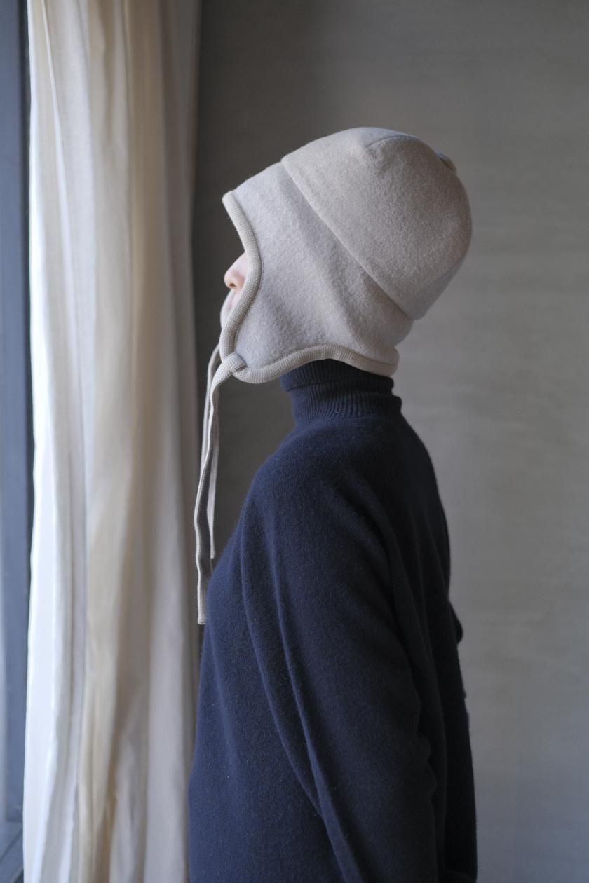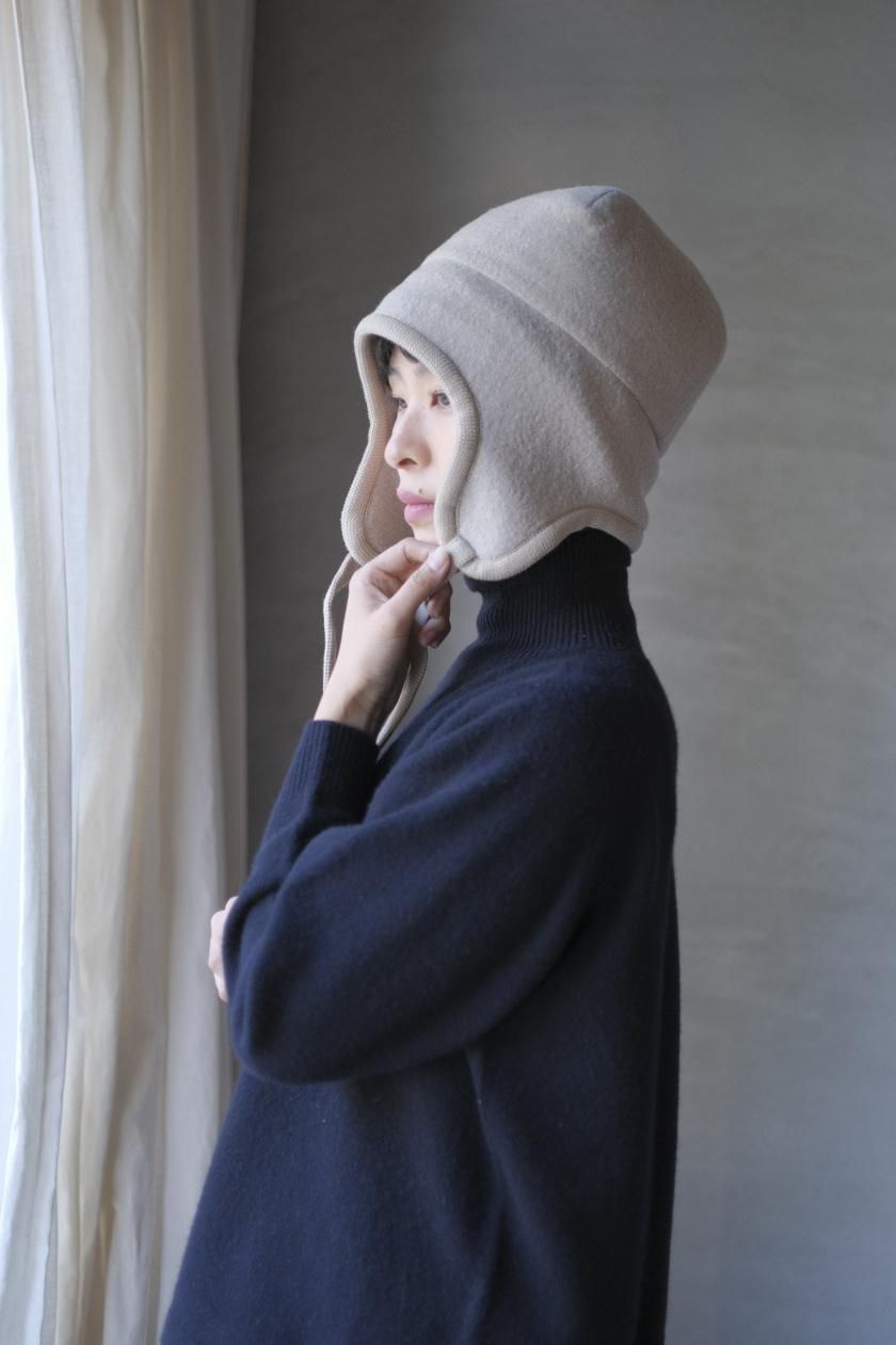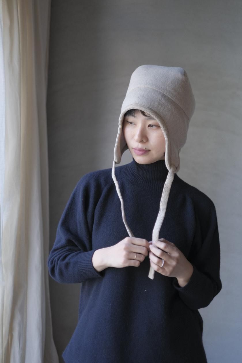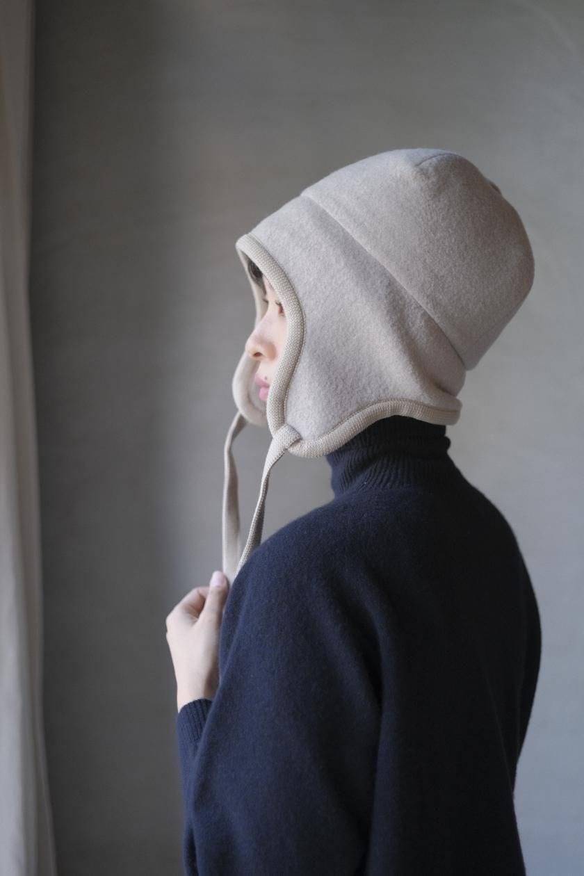 Sashikiオリジナルのトラッパーキャップです。通称、飛行帽、フライトキャップ、トラッパー帽とも言われる耳当てつきの帽子ですが、こちらの商品はツバのないタイプになります。その為、少しニットキャップのような雰囲気もあり、ツバのあるタイプよりもメンズっぽさが軽減されています。表地はウールリングヤーンを圧縮した生地を使用していますのでふっくらとした印象です。寒い日は耳まで入れるのもお勧めですので通常より少し大きめでも良いかもしれません。すっぽりと被って暖かくお過ごしください。