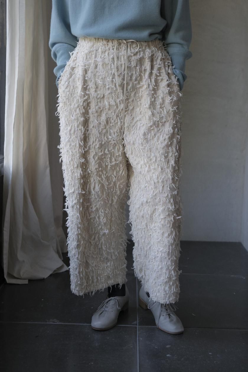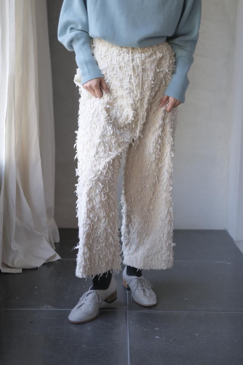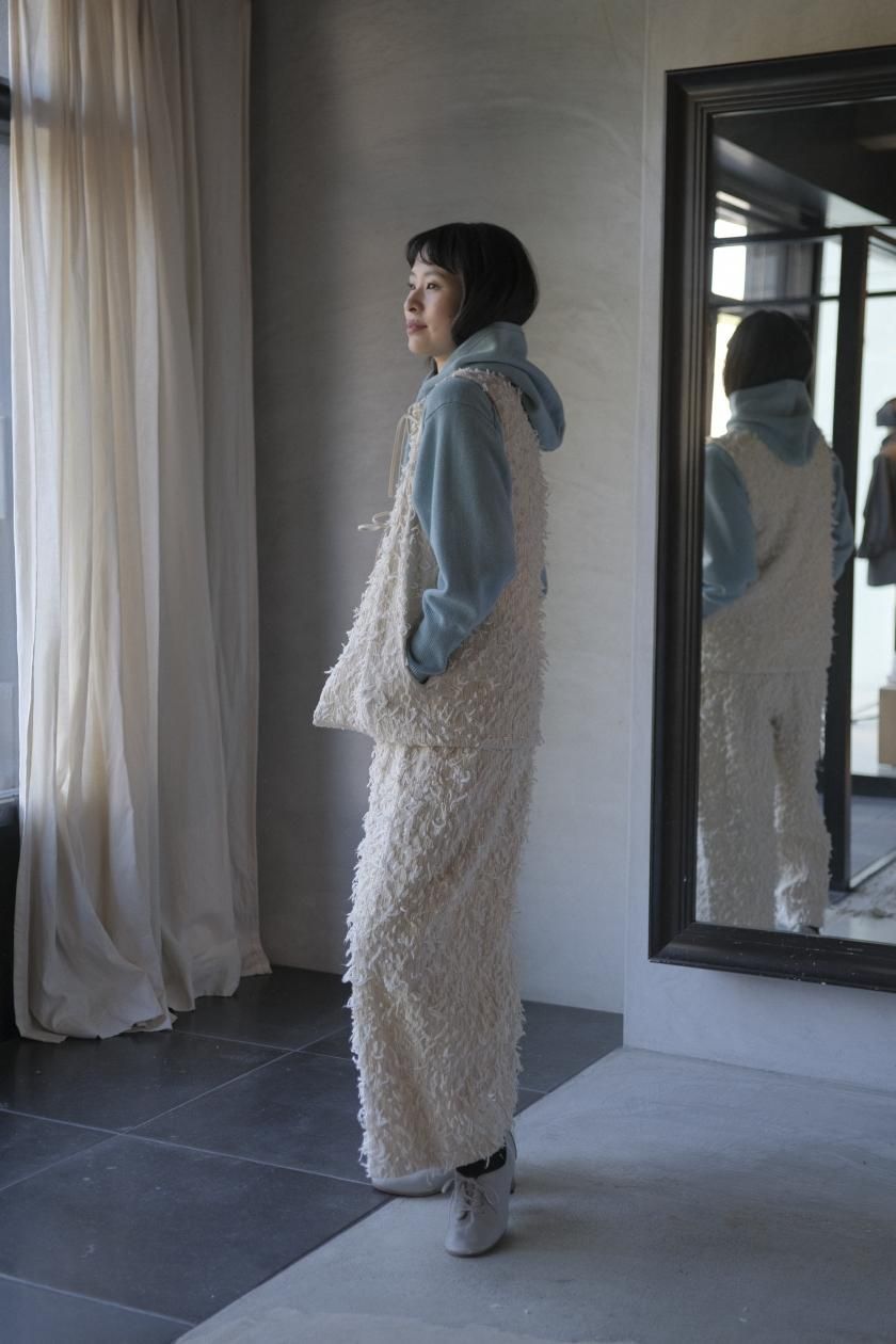 珍しい番手の綿糸を使用したカット糸は、あえて長めに不揃いにカットしているので、