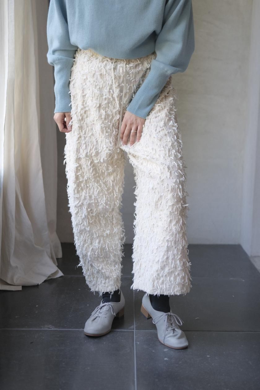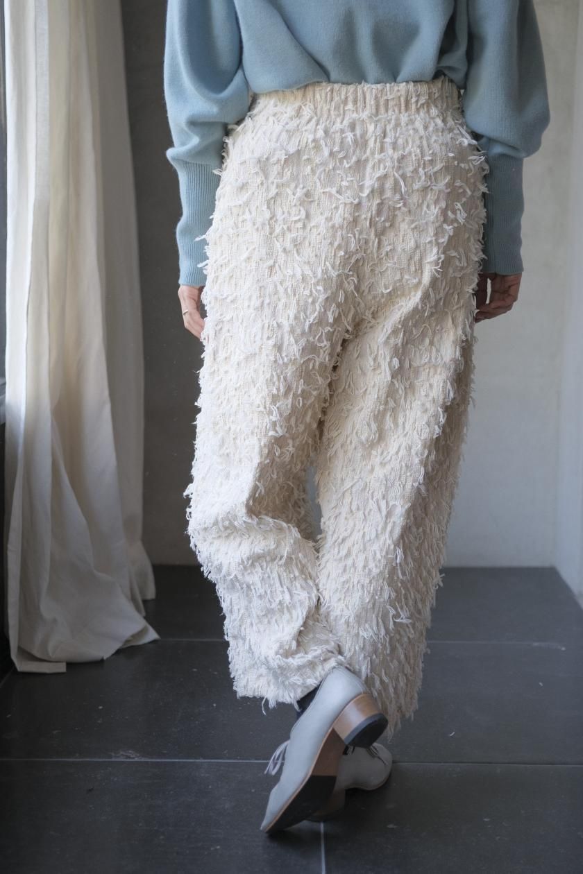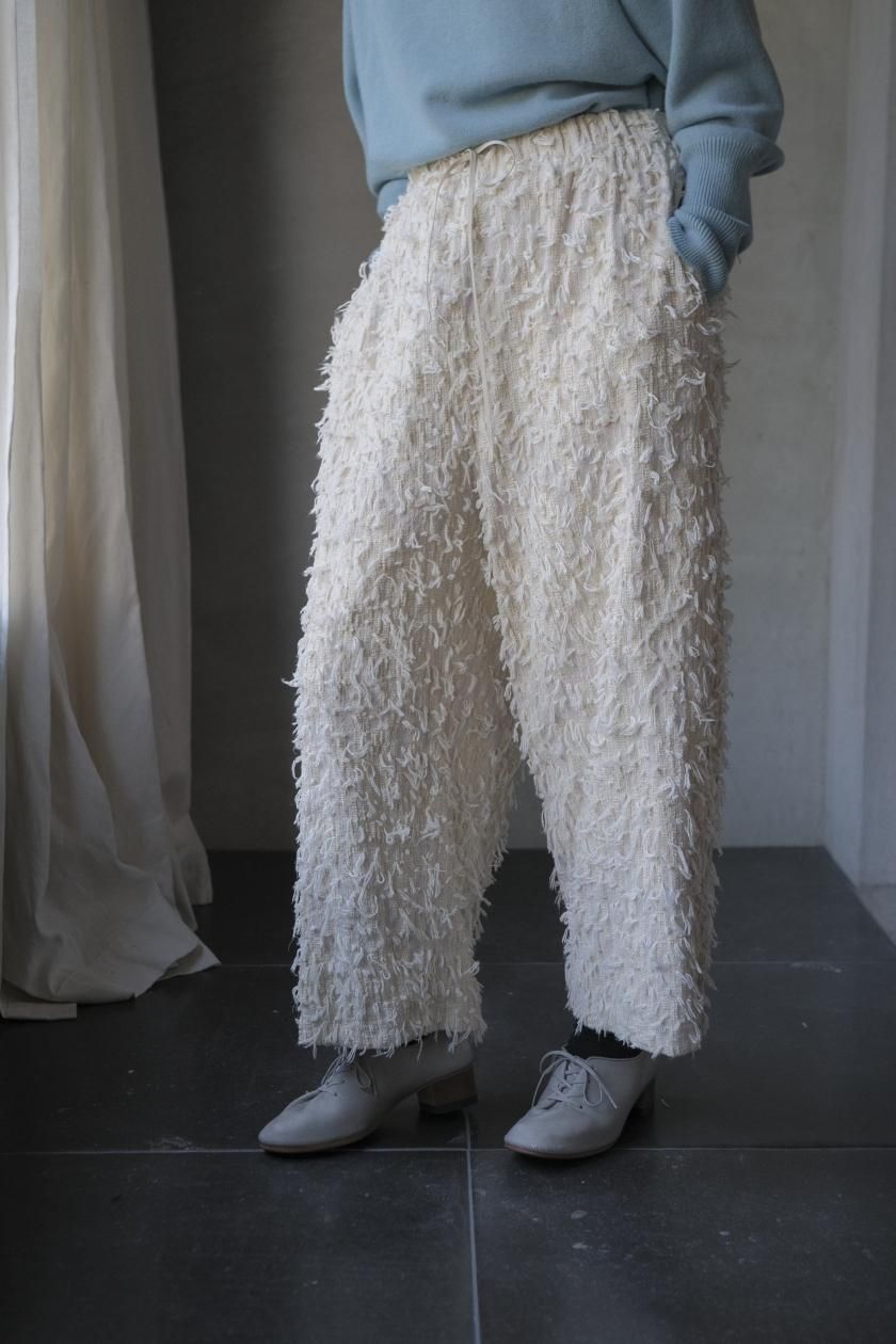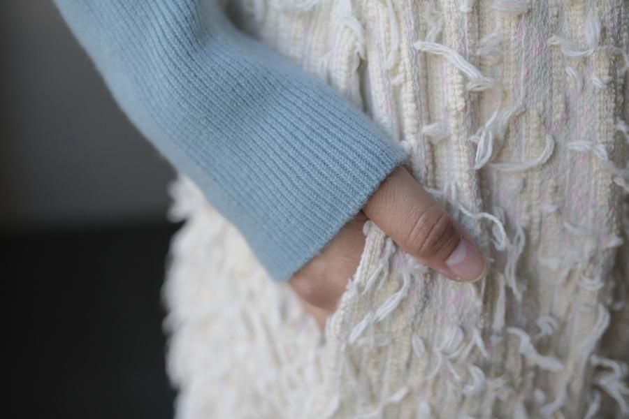 珍しい番手の綿糸を使用したカット糸は、あえて長めに不揃いにカットしているので、