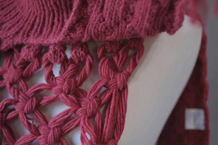 今シーズンはマクラメやタッセルに加え、毎シーズン共通する複雑な編地からコレクションを展開した。