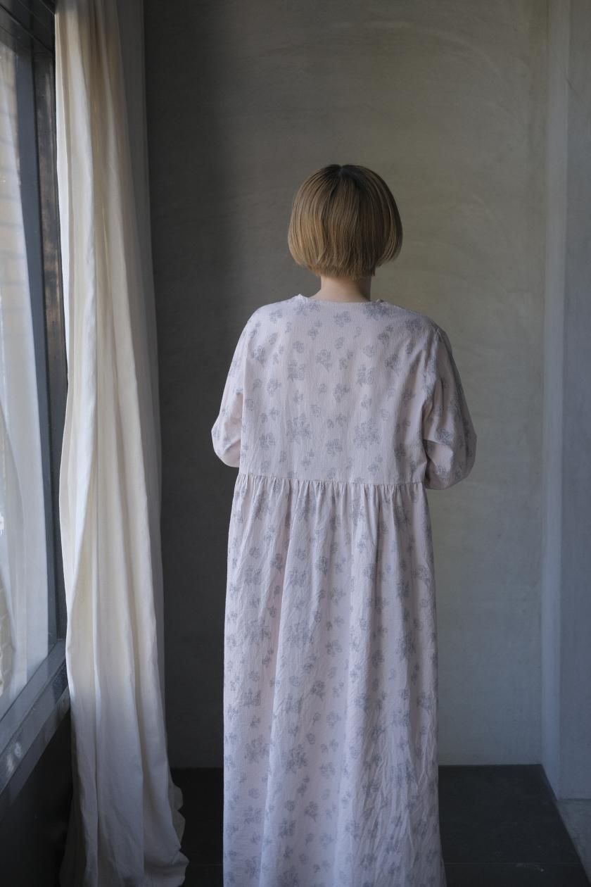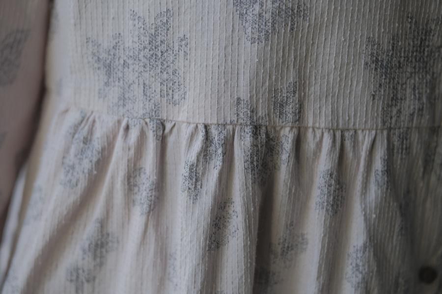 ウエスト切り替えから甘すぎない分量のギャザーが入ったワンピース。