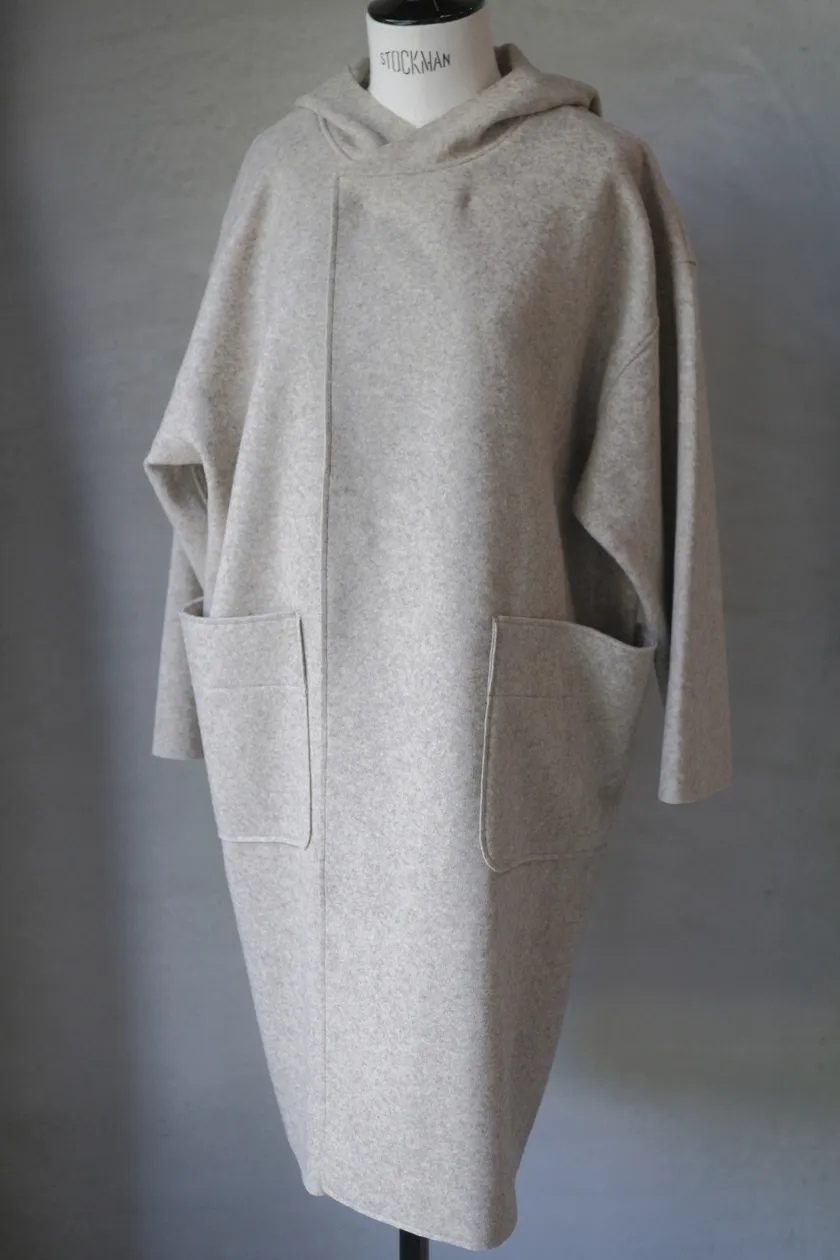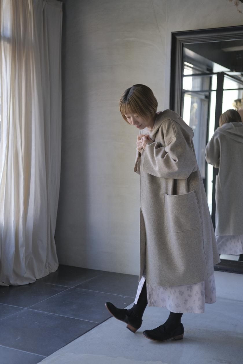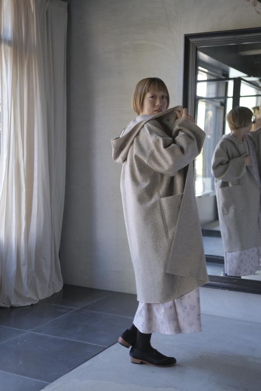 MITTAN / 圧縮ウールニットフードコート(薄茶)